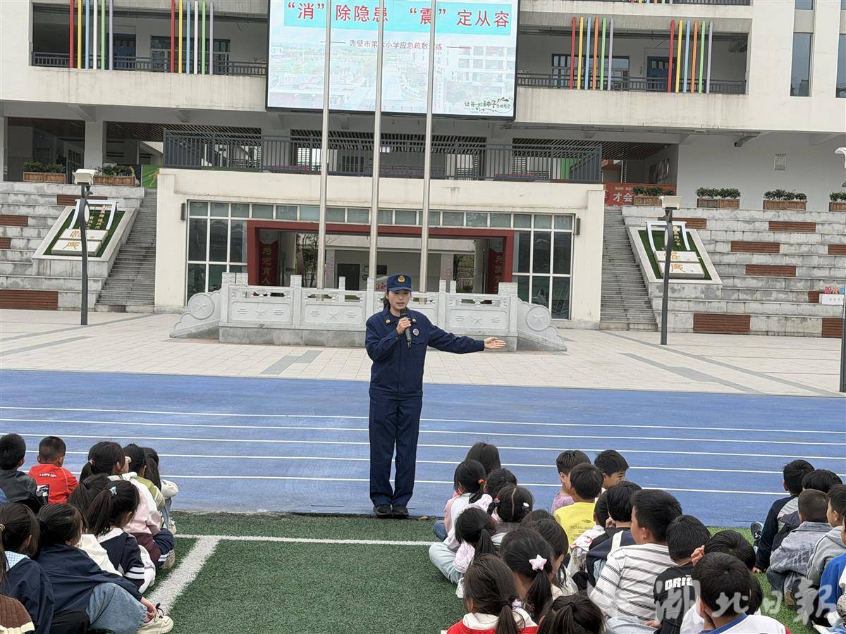 近日,咸宁赤壁市消防救援局“火焰蓝”宣教队走进赤壁市第六小学,用孩子们听得懂、记得住的方式,为全校1800多名师生讲了一堂防火逃生课。