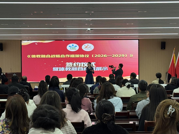 为深入贯彻落实国家关于深化体教融合、促进青少年健康发展的部署要求,推动我省体育后备人才培养提质增效,4月22日上午,崇仁中心与武汉市硚口区体育馆小学战略合作签约仪式暨体教融合成果展顺利举行。省体育局党组成员、副局长郑李辉出席并讲话。崇仁中心党委书记、主任樊光正,武汉市教育局体卫艺处处长任光贤,硚口区体育局局长党玲等参加活动。
