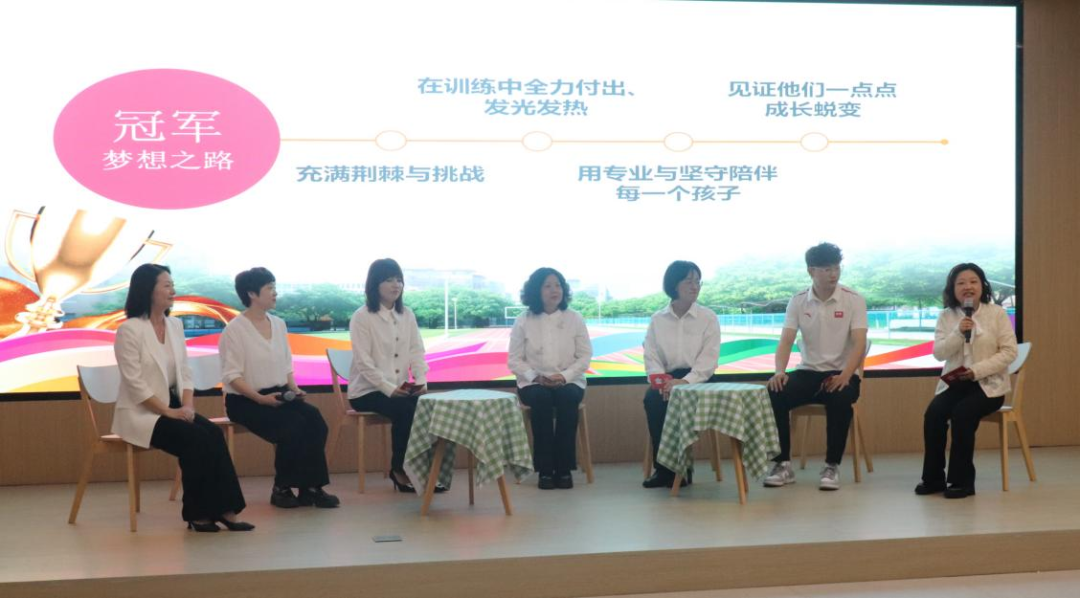 仪式上,双方观看了联合制作的体教融合宣传片《五维聚力 共筑冠军——体教融合发展共同体成果巡礼》,冠军班进行《活力燃校园 童心铸冠军》风采展示,互相赠送体教融合成果书籍。体育馆小学校长鄢明丹及教师、家长代表和崇仁中心体操教练员张艺共同探讨体教融合发展成果。