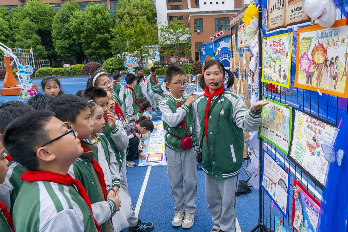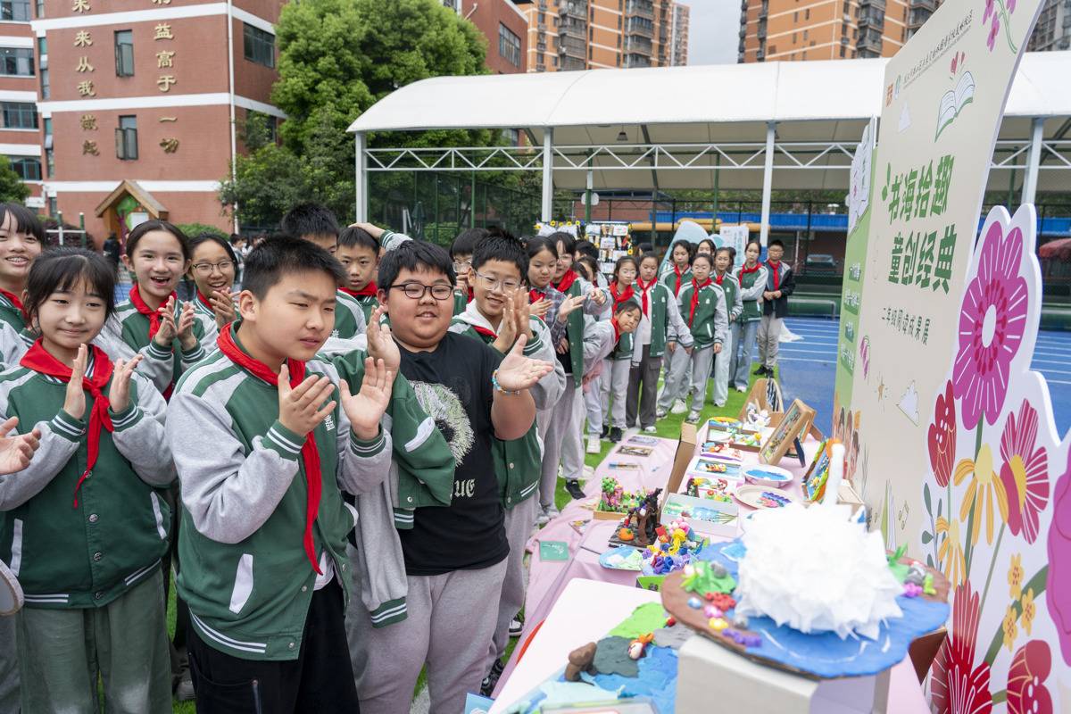4月23日是世界读书日,武汉市洪山区未来实验外国语学校美林校区正式开启“美林读书节”活动。同学们将书本中的经典典故与知识内容相结合,巧妙融入短剧编排与主题展览,在沉浸式体验中汲取书香养分。活动现场,同学们围坐交流读书心得、品读经典名著,在文字中感受阅读乐趣、积累知识力量。校园文艺展演精彩亮相:经典朗诵声情并茂,尽显文字韵律之美;快板书《竹板诵书香》节奏轻快、朗朗上口;经典剧目《花木兰》生动演绎传统文化,同学们以饱满风貌展现少年朝气,传承中华文脉。此外,武汉客运段青年志愿者走进校园,携手参与读书活动,为同学们科普高铁知识、分享趣味见闻,进一步拓宽了大家的视野。整场活动以阅读润童心、以文化育品格,让书香满溢校园。(湖北日报全媒记者 魏铼 通讯员 王茜 卢佳 摄)