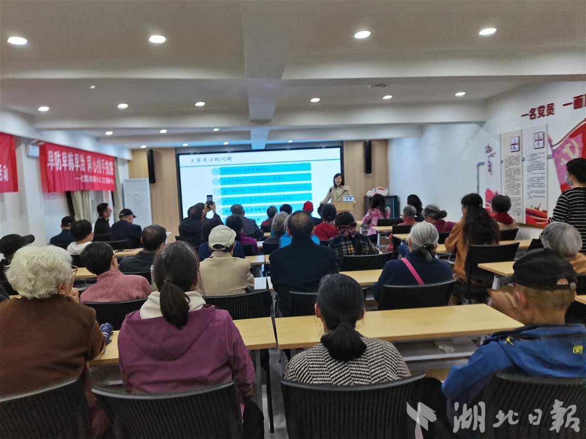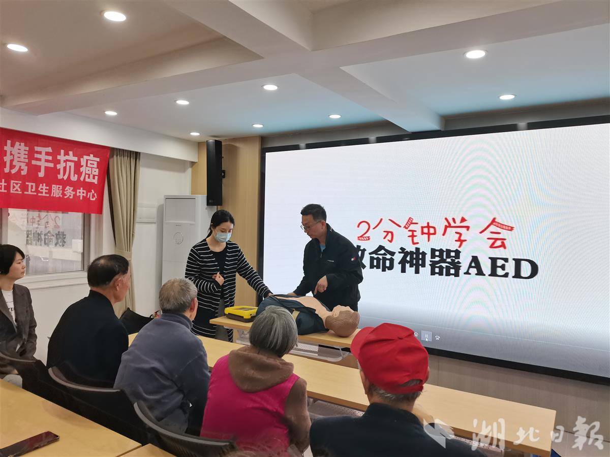 湖北日报讯(记者李光正、通讯员刘淑萍)4月22日,武汉市武昌区南湖街道水域天际社区开展健康讲座活动,聚焦消化道肿瘤防治与猝死急救技能,吸引40余名居民现场聆听。