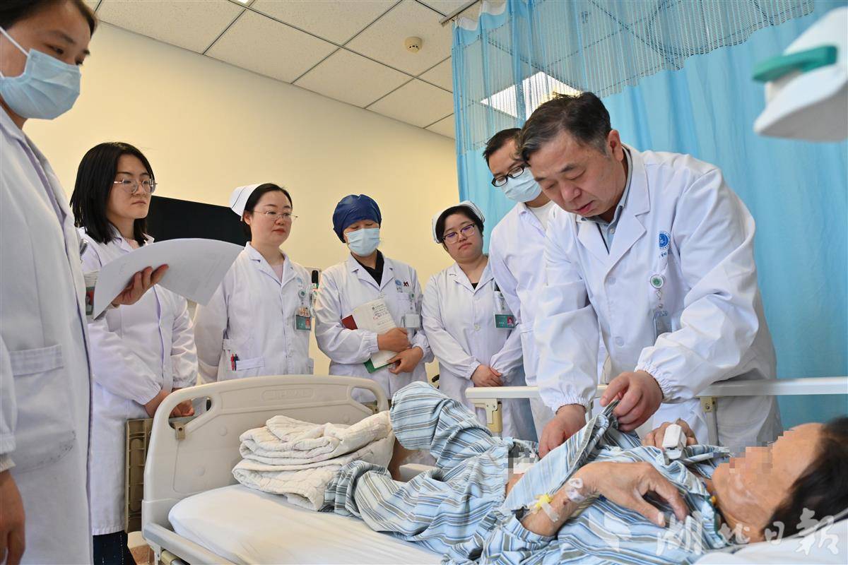 术后,医疗团队为陈芳进行查房。(通讯员 赵炯 摄)