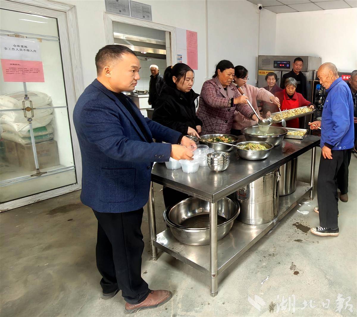 李玉红笑着为老人盛了一碗粥,转身又去查看后厨的食品留样柜。