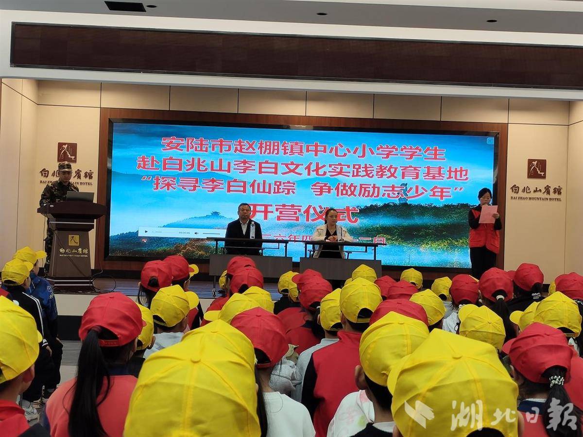 湖北日报讯(通讯员陈杏华、苏易雪)4月22日至24日,安陆市赵棚镇中心小学组织三至六年级学生走进白兆山李白文化研学实践教育基地,开展为期三天的“探寻李白仙迹 争做励志少年”主题研学活动,让学生在行走中触摸诗仙文脉,在实践中涵养文化自信。
