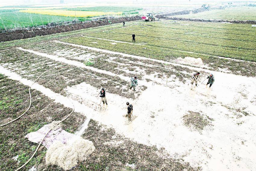 仲春时节,位于天门市岳口镇的市易优田现代农业合作社的鱼腥草种植基地内一派繁忙景象:喷水枪喷洒着水雾,工人穿梭于田垄间,熟练地挑选、分拣刚刚冲洗出的鱼腥草(如图),将鲜嫩的鱼腥草整齐装袋打包,准备发往外地市场。