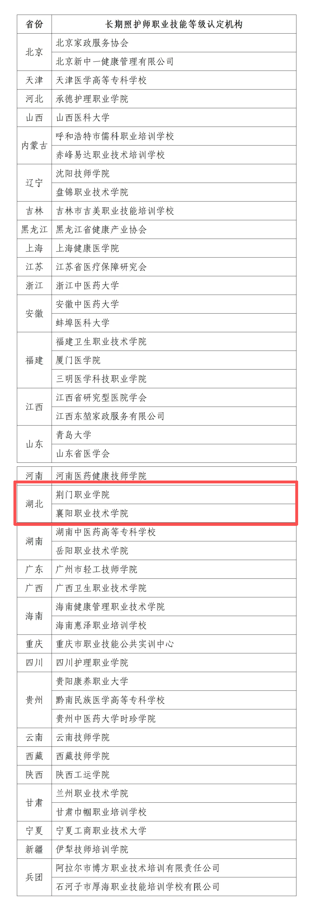 各省(区、市)目前已组织开展长期照护师职业技能等级认定的机构名单如下,具体信息可登录技能人才评价工作网(www.osta.org.cn)查询。有意向报考人员可关注各认定机构查阅考试报名通知,相关信息也将通过国家和省级医保部门网站同步转发。