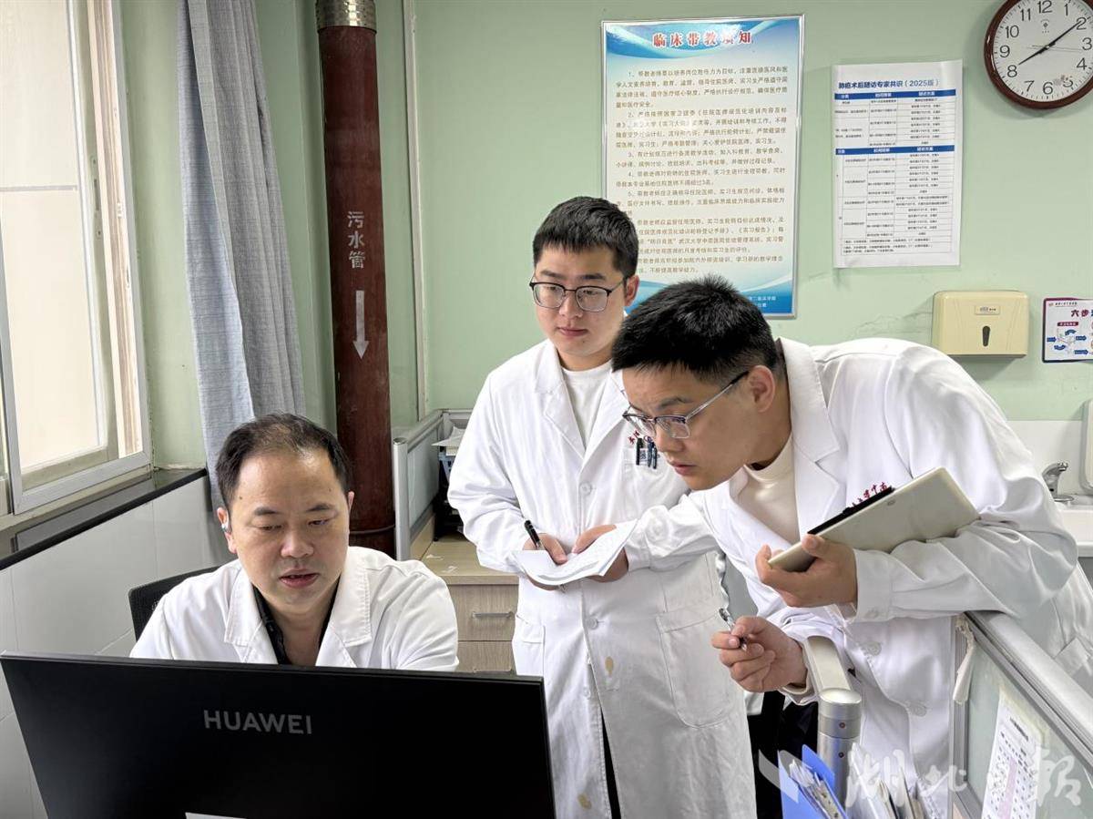 周雪峰(左)与团队讨论病情。(受访单位供图)