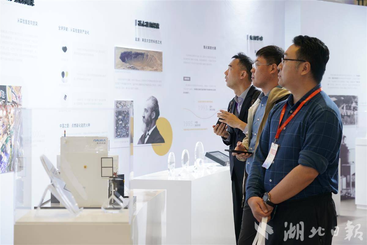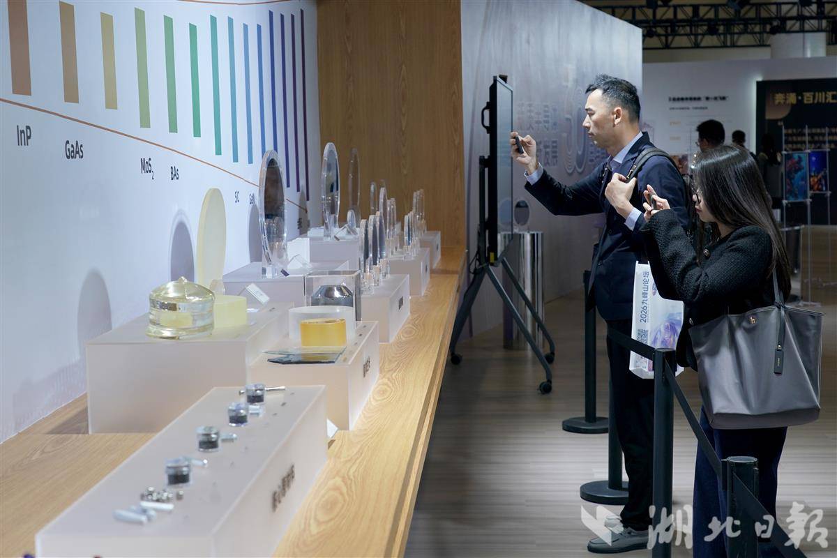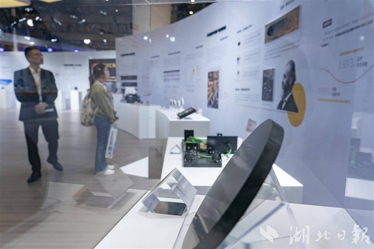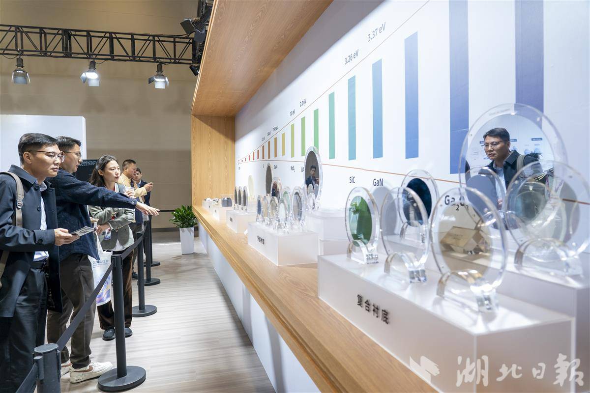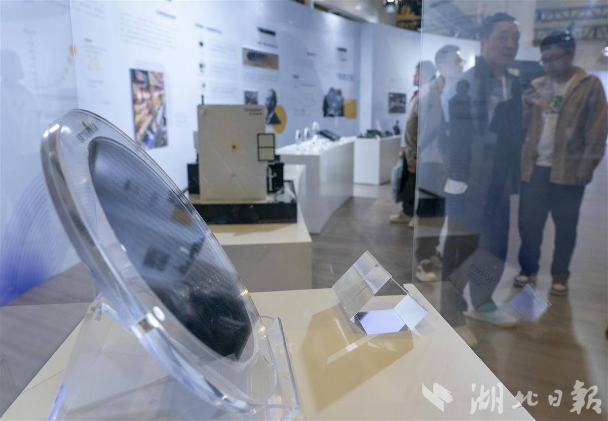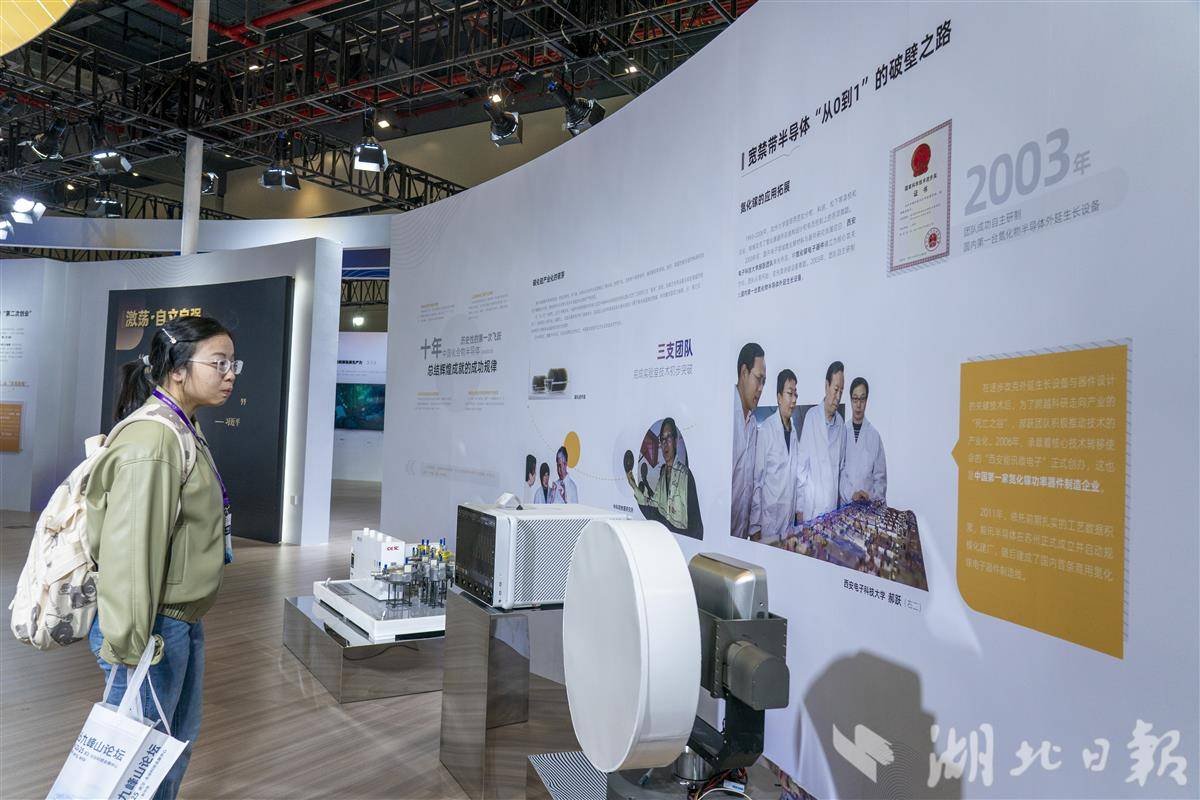 4月24日,武汉光谷科技会展中心,正在举行的2026九峰山论坛专门开辟中国新质半导体创新发展三十年特展,全景呈现我国化合物半导体从拓荒奠基到自主创新的壮阔历程。展览聚焦中国新质半导体创新发展历程,按四大阶段梳理化合物半导体的技术突破、产业推进与关键节点,清晰展现我国半导体从初生起步到逐步实现自主创新的演进历程。观众可在展区内沉浸式回顾中国半导体从“0”到“1”的跨越、从“跟跑”到“并跑”乃至“领跑”的奋斗足迹。(湖北日报全媒记者 魏铼摄)