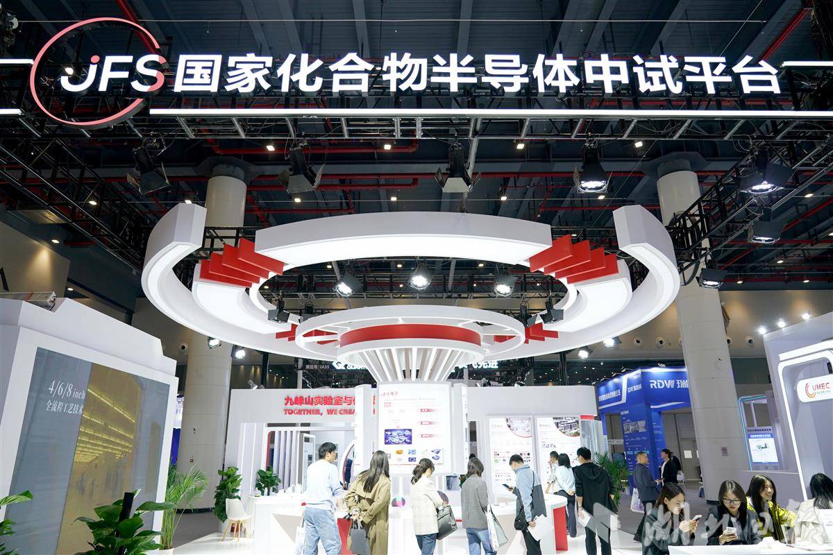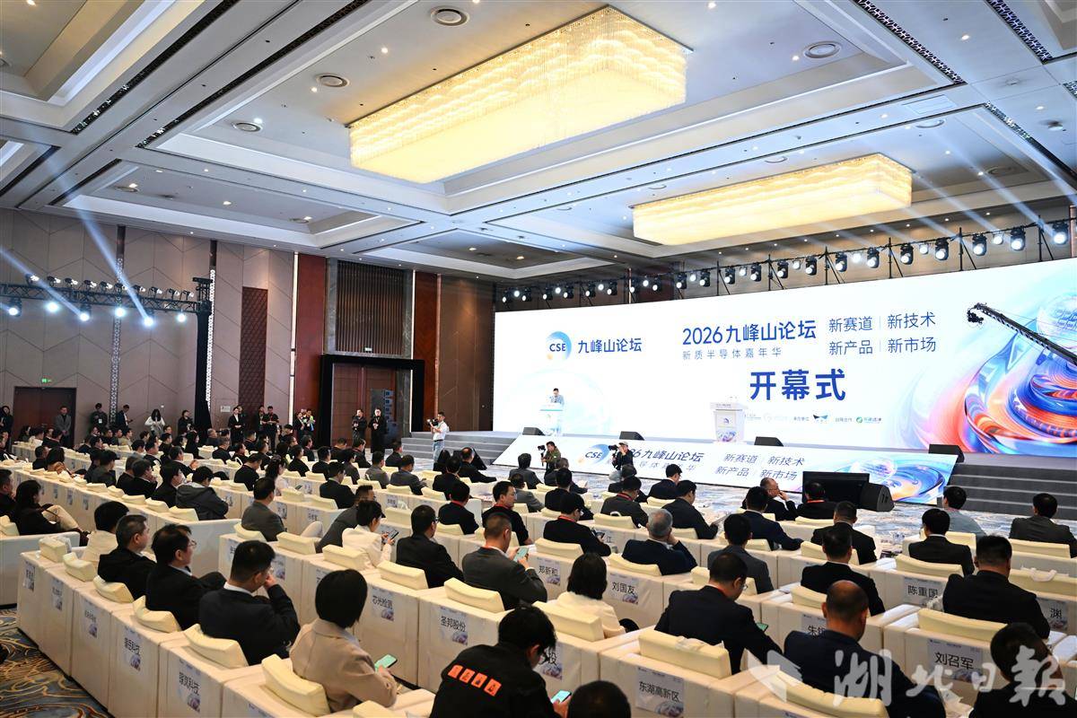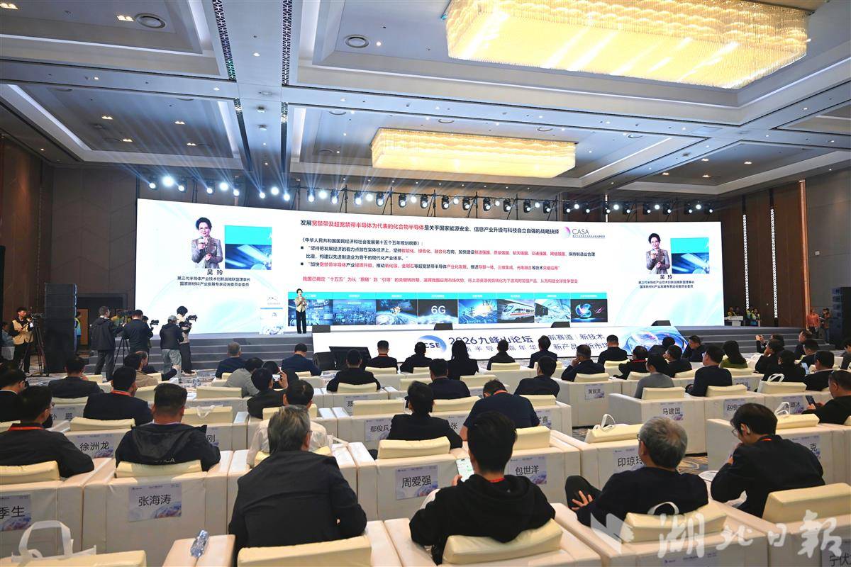 4月24日,2026九峰山论坛在武汉光谷科技会展中心开幕。作为国内化合物半导体领域规模最大、影响力最强的行业会议,开幕式上24个项目签约落户光谷,项目涵盖设计、材料、核心零部件等领域。近年来,光谷着力打造千亿级产业创新街区,打通“研发-中试-量产” 全链条,让创新成果从实验室快速走向生产线。目前,以九峰山实验室为核心,面积14平方公里的化合物半导体产业创新街区正全速推进,16.8万平方米的孵化加速及制造基地即将建成,力争3年内引进培育上下游企业100家。(湖北日报全媒记者 魏铼 通讯员 张璨龙 摄)