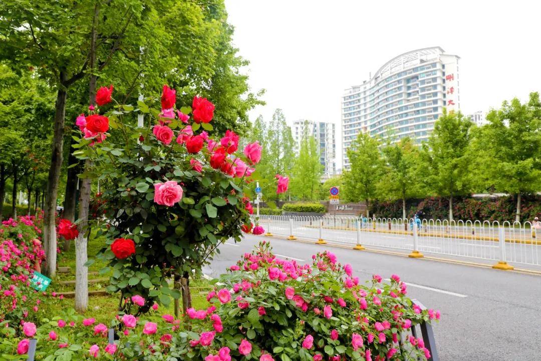 月季的精彩不止于珞狮南路。文馨街、南湖幸福湾公园、白云路、白沙洲高架、欢乐大道高架、杨春湖公园、关山公园、毛坦公园……处处都有月季盛放的身影,等你一一解锁。