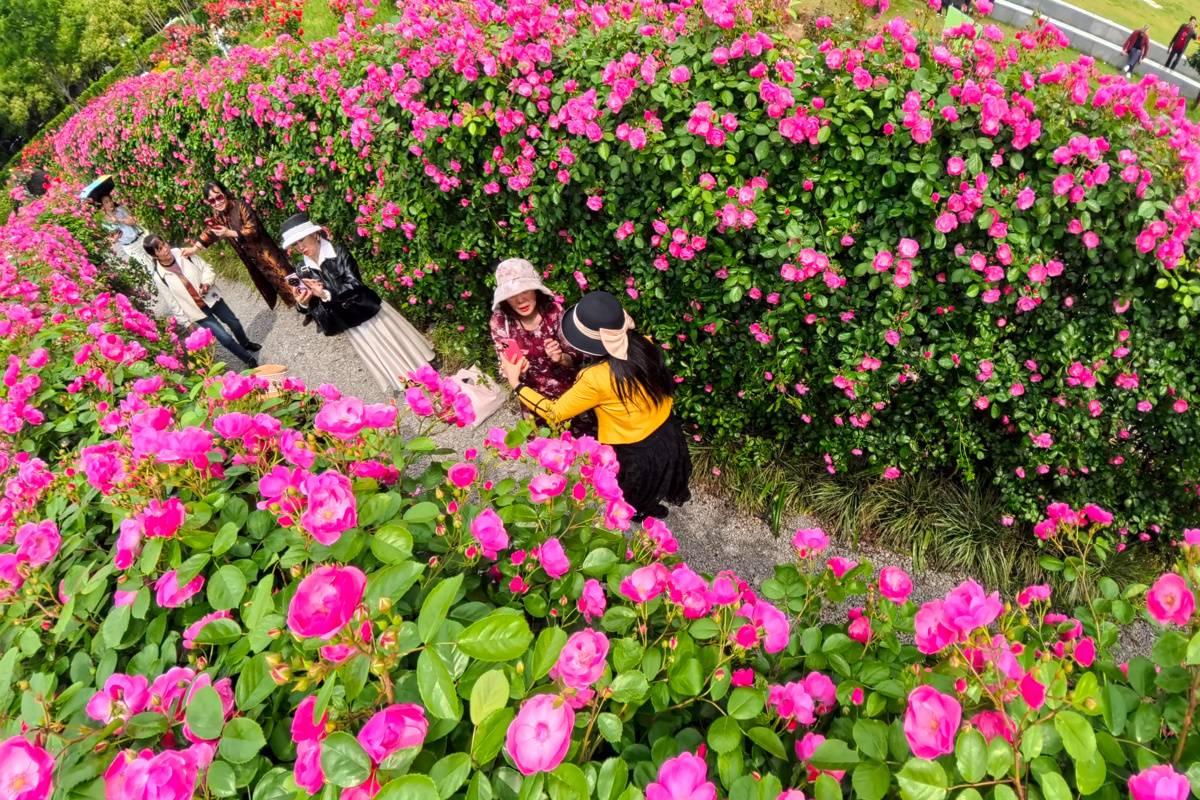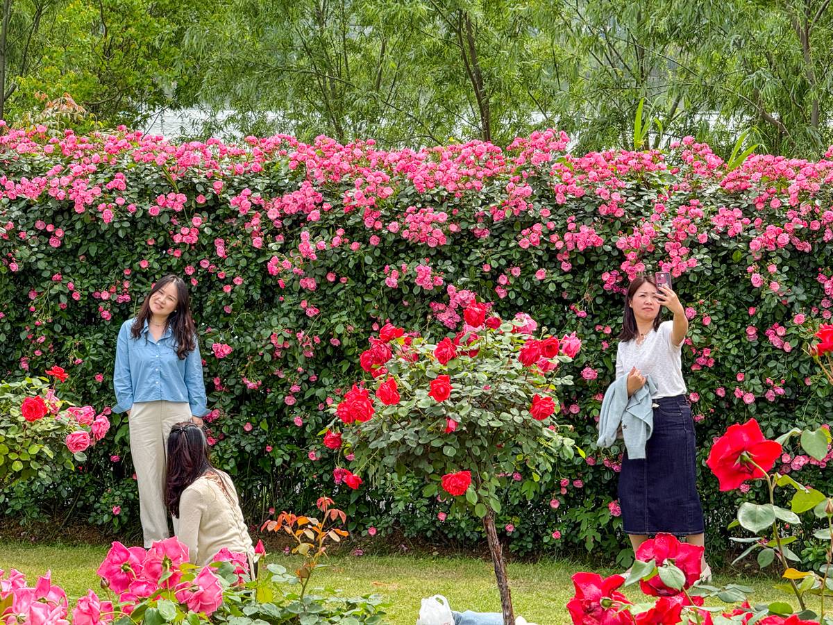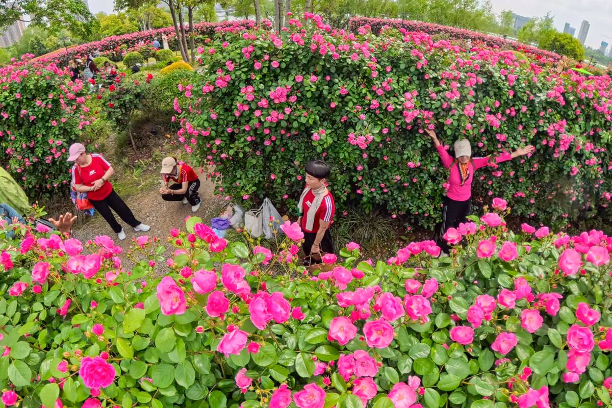 2026年4月24日,武汉市东西湖区金银湖月季花园内,5万余株、108个品种的月季迎来盛花期。各色月季竞相绽放,花廊蜿蜒、花墙如瀑,花香沁人心脾。作为武汉最大月季专类花园,园内人气十足,市民游客穿梭花海,驻足拍照打卡,定格春日浪漫,尽享生态之美。(湖北日报全媒记者 倪娜 通讯员 晏君 摄)