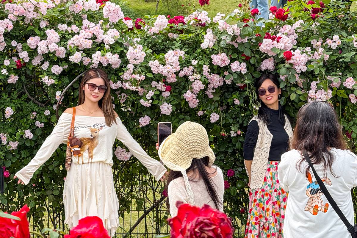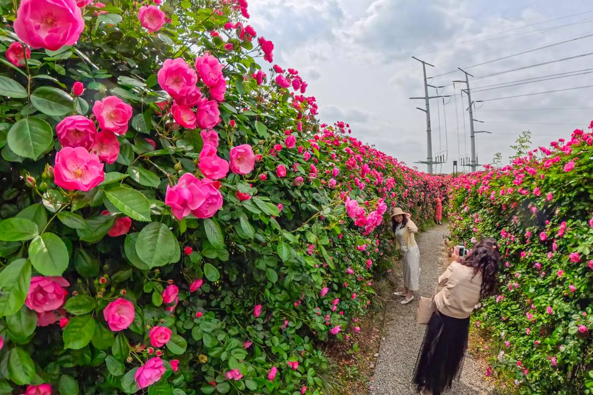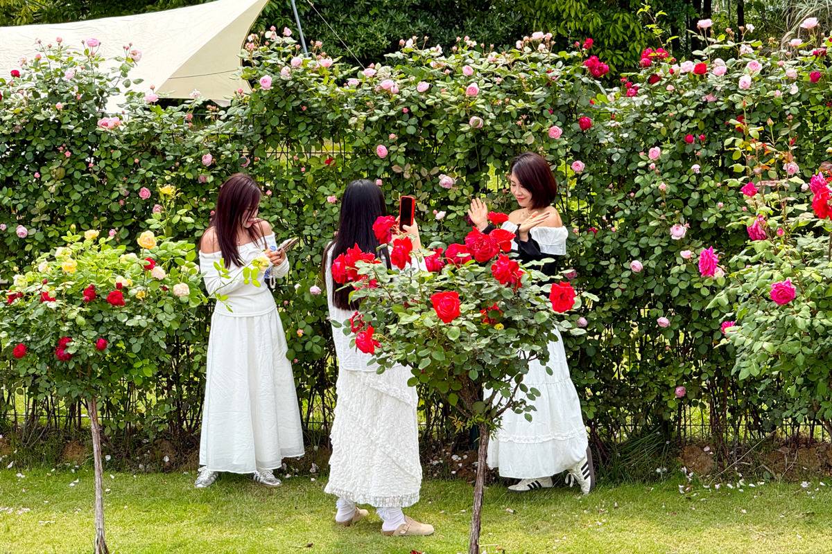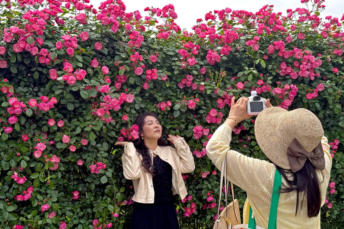 2026年4月24日,武汉市东西湖区金银湖月季花园内,5万余株、108个品种的月季迎来盛花期。各色月季竞相绽放,花廊蜿蜒、花墙如瀑,花香沁人心脾。作为武汉最大月季专类花园,园内人气十足,市民游客穿梭花海,驻足拍照打卡,定格春日浪漫,尽享生态之美。(湖北日报全媒记者 倪娜 通讯员 晏君 摄)