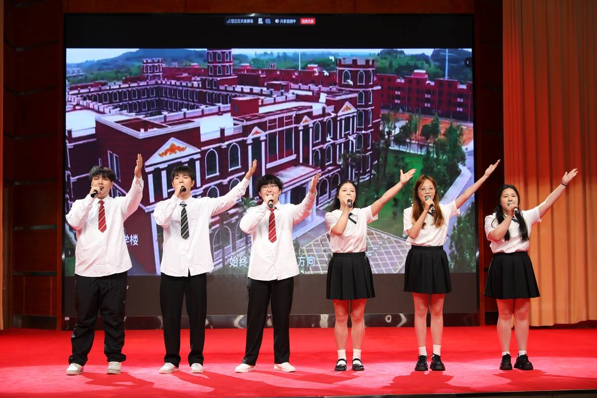 活动尾声,全场师生同台诵读《中华颂》经典段落节选。从盘古开天到金戈铁马,从四大文明到新时代画卷,千年文脉蕴藏的浩然气息和家国情怀油然流溢。当“中华是我的家,中华是我们的家”的告白响彻礼堂,对故土的眷恋、对文脉的尊崇、对祖国的热爱交融相拥,化作一股团结奋进的强大暖流瞬间奔涌而来,不断叩击着全场师生的心灵,令人血脉偾张,充满深深的自豪。