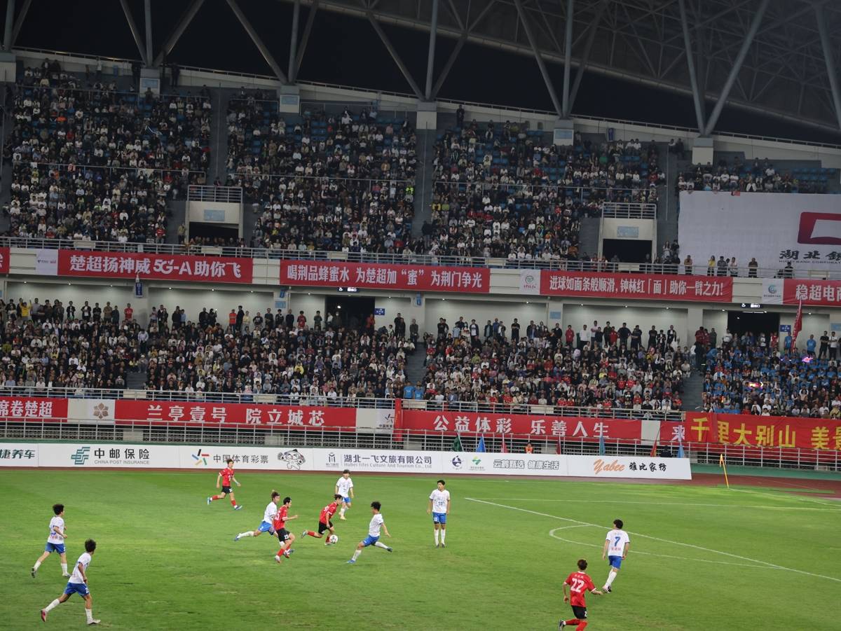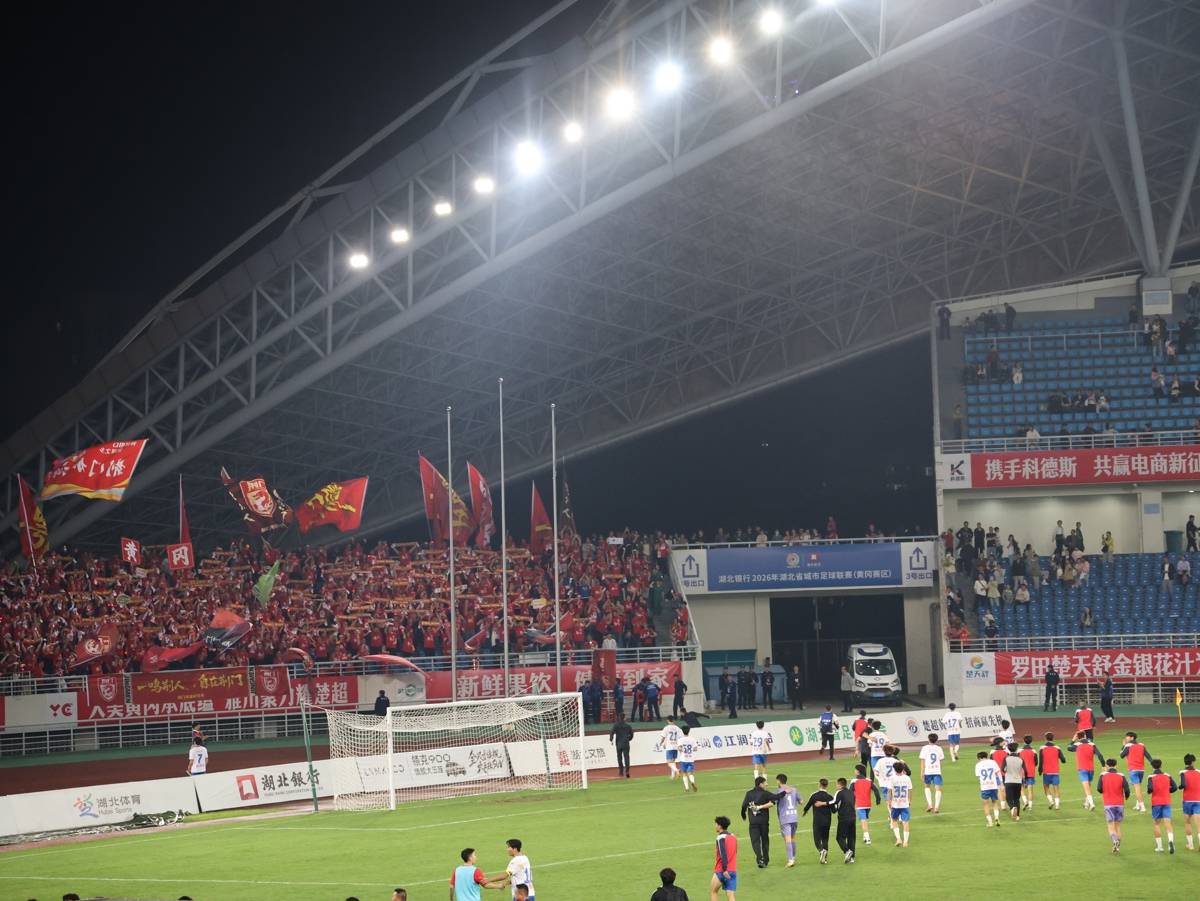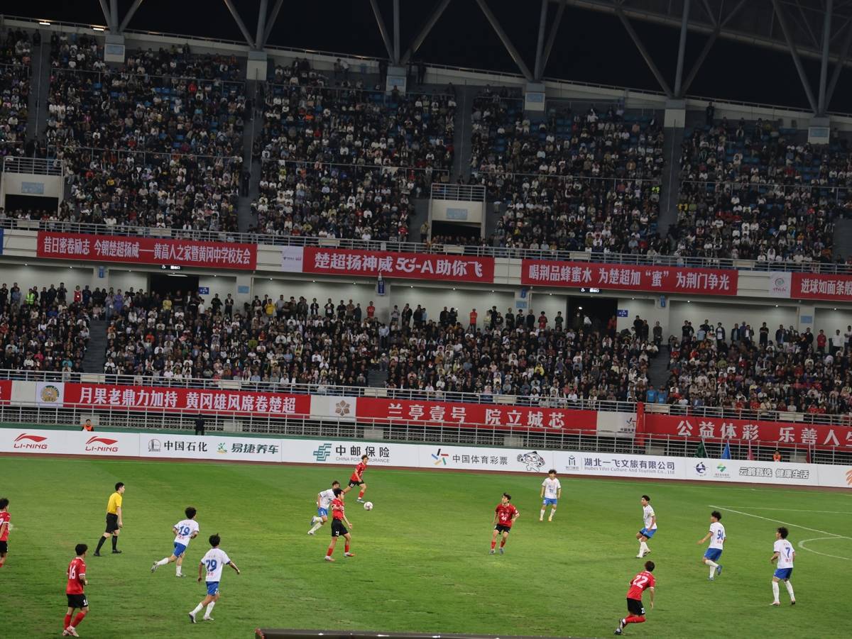 湖北日报讯(记者刘毅)4月25日晚,黄冈市体育中心又迎来了人民的节日,2026年湖北省城市足球联赛(楚超)第二轮在此上演,入场观赛人数达到18,306人,刷新了上一场的纪录。本轮黄冈队坐镇主场迎战首轮同样取胜的荆门金龙泉队。经过90分钟激战,双方最终以1比1握手言和,各取1分。