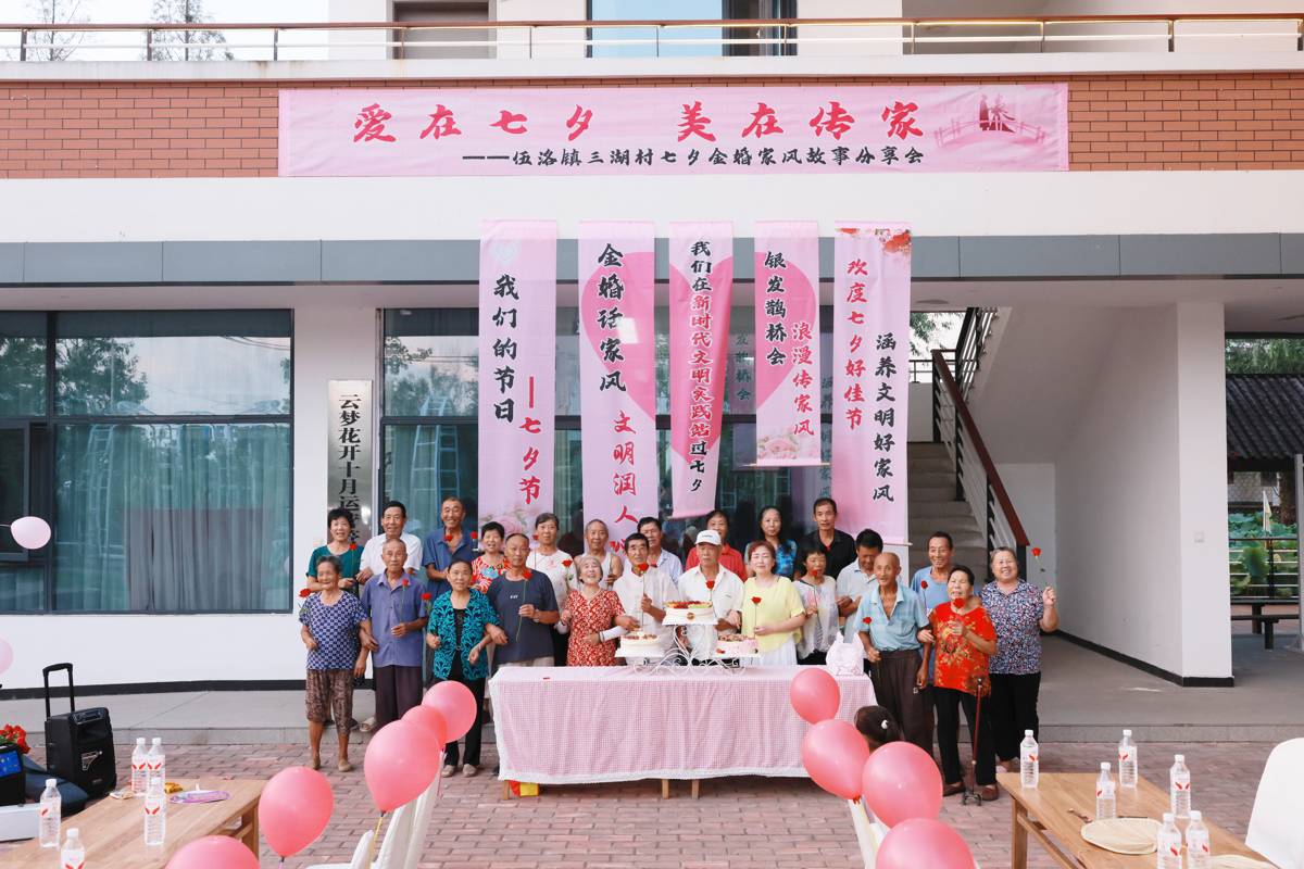 云梦县伍洛镇三湖村组织金婚家庭分享家风故事。(通讯员 乔卓越 摄)