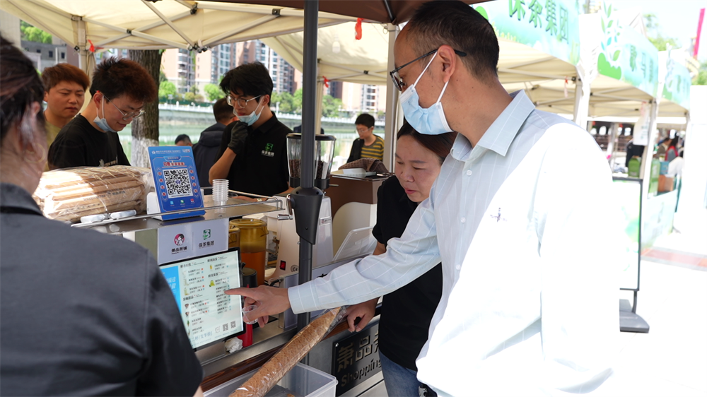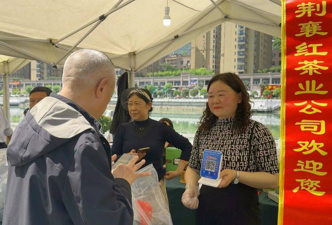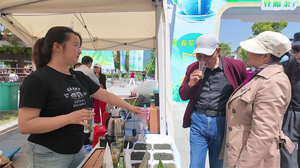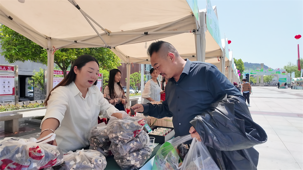 展销现场,38个展区沿河岸依次排开,全县11个乡镇、34家企业展出的优质茶叶、香菇木耳、葛根制品等特色农产品琳琅满目,吸引了众多市民和游客前来驻足品尝、争相选购。