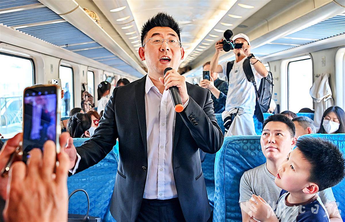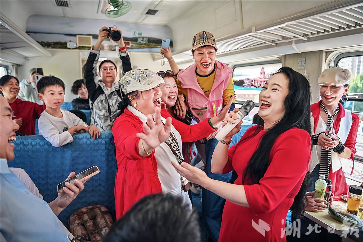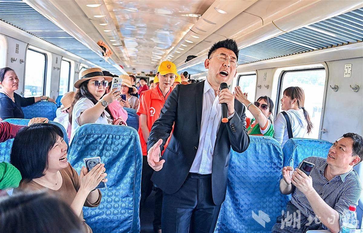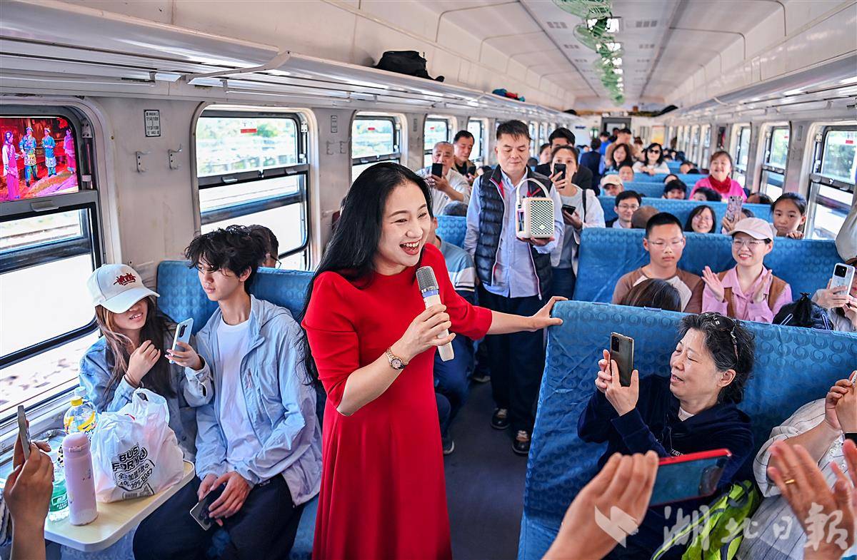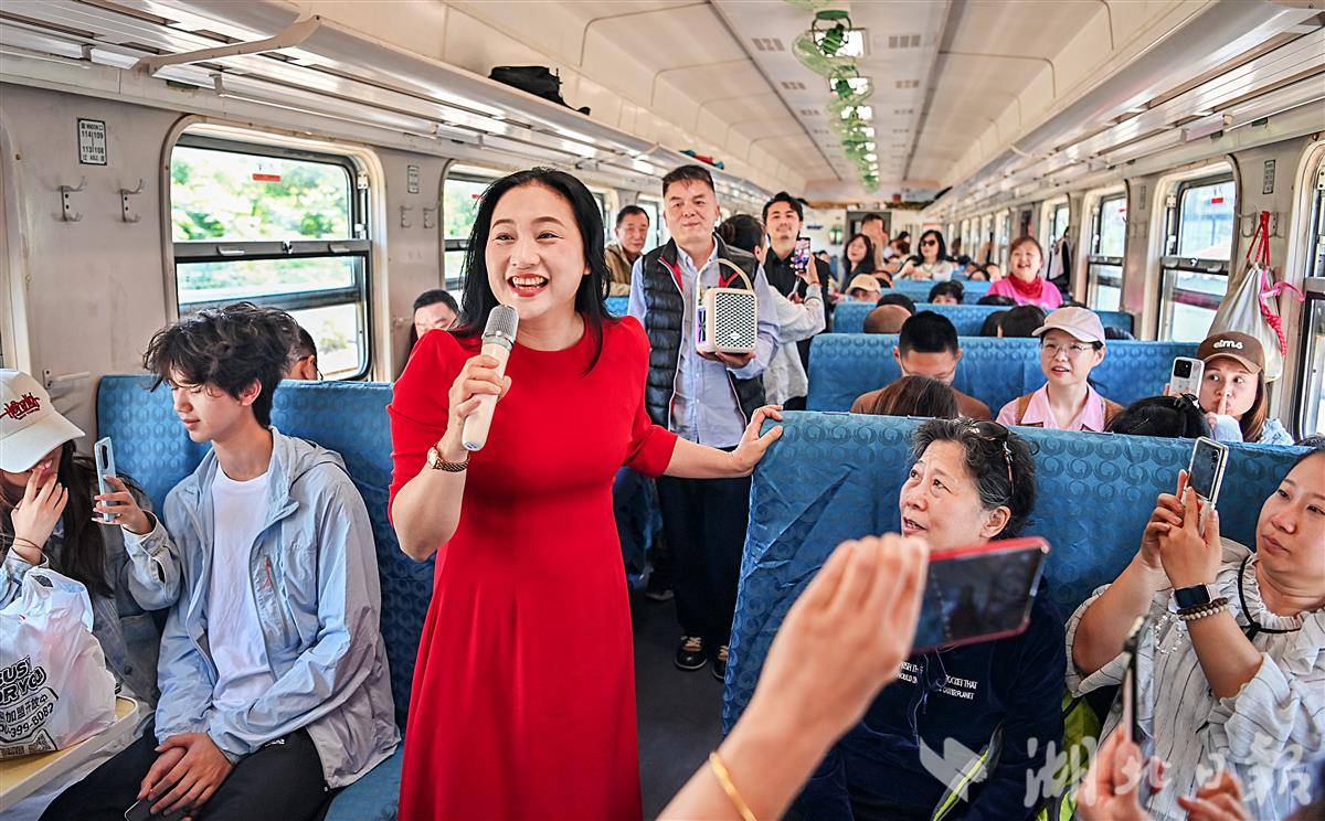 歌手在“武昌至武昌”5856次普速环线列车上表演,并与旅客互动。