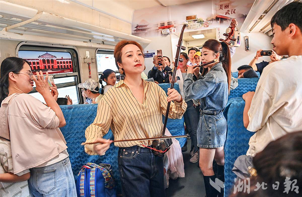 这场覆盖武汉铁路枢纽的文旅盛宴,是由武汉车站携手相关文化、文旅部门,紧扣“武昌至武昌”“武汉东至武汉东”环线普速列车运行特点,重磅推出的“荆风楚韵艺相逢”环武汉专列文旅融合活动,让更多游客在便捷舒适的铁路出行中,沉浸式感受荆楚文化的深厚底蕴与武汉城市的独特魅力。(湖北日报全媒记者 朱熙勇 通讯员 刘娟 摄)