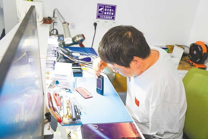 “单手确实吃力,只能做换电池、清听筒等常规维修。像焊芯片、拆屏幕这些高难度的精细活,全靠同行们免费帮忙。”