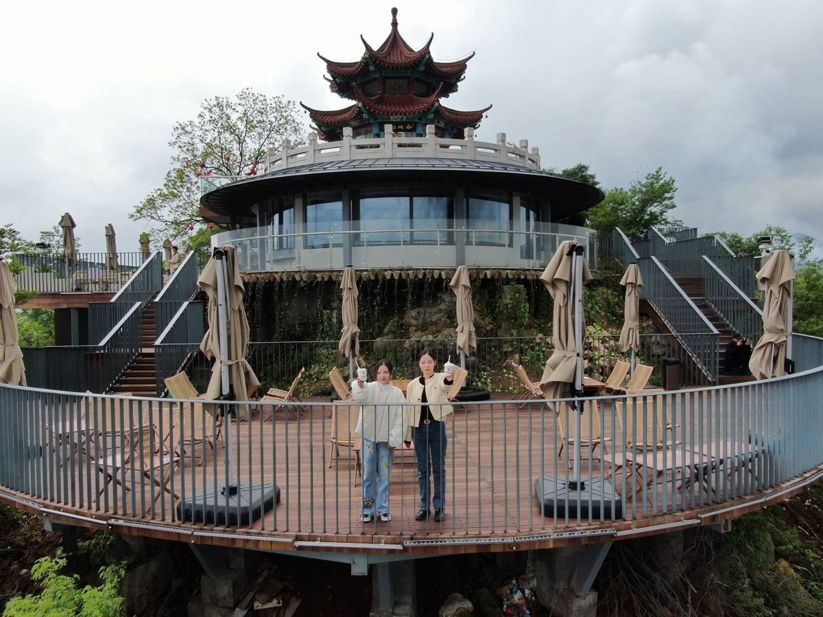 连日来,年轻人在西塞山望江咖啡馆拍摄网络短剧。(受访者供图)