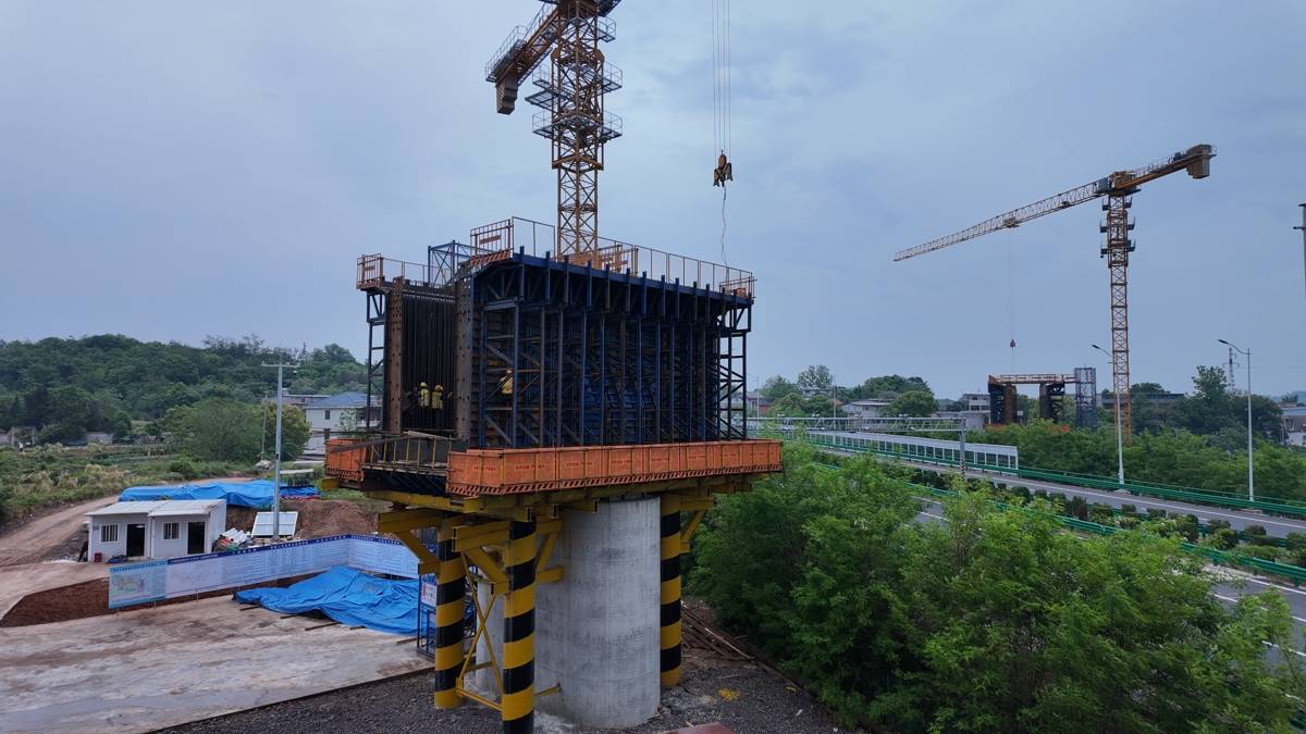 沿线看到,上跨机场高速特大桥首根墩柱已浇筑完成,工人们正在模具里绑扎钢筋。黄伊介绍,100米连续梁桥段计划于5月上旬启动首个梁段混凝土浇筑施工。在未来的编组站场地,6台挖机轮番在小山包上挖掘,这里离鄂州花湖国际机场仅1公里,开挖量达400万立方米,机场货运场站同步建设9条配套联络线,预留6条铁路通道,远期适配高铁物流运输功能。