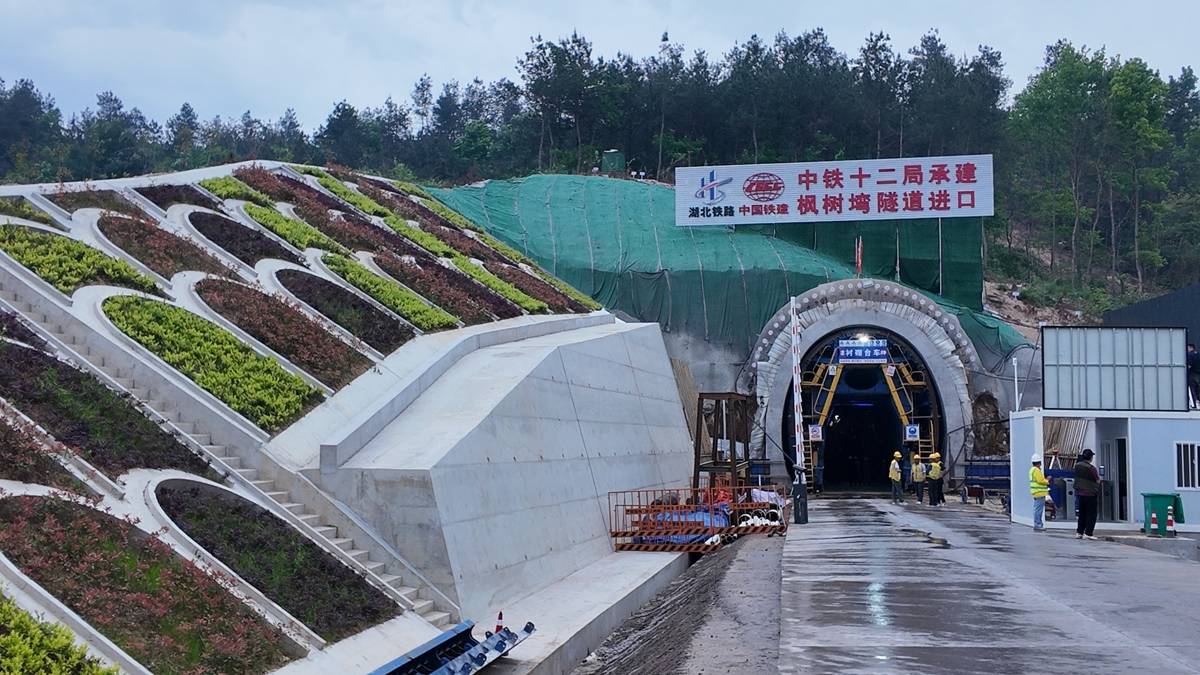 在鄂州市鄂城区沙窝乡草陂村,全长1207米的枫树塆隧道入口边坡已绿草如茵。智能化管理平台实时同步隧道内作业人员定位,当日洞内作业人员共计34名,作业人员安全帽均搭载定位芯片。进入循环通风的隧道,自动化二衬台车平稳作业,出渣运输车辆循环往返。一旁的中铁十二局项目总工程师黄伊介绍,通过优化施工方案,该隧道双向掘进单洞进尺累计超300米。