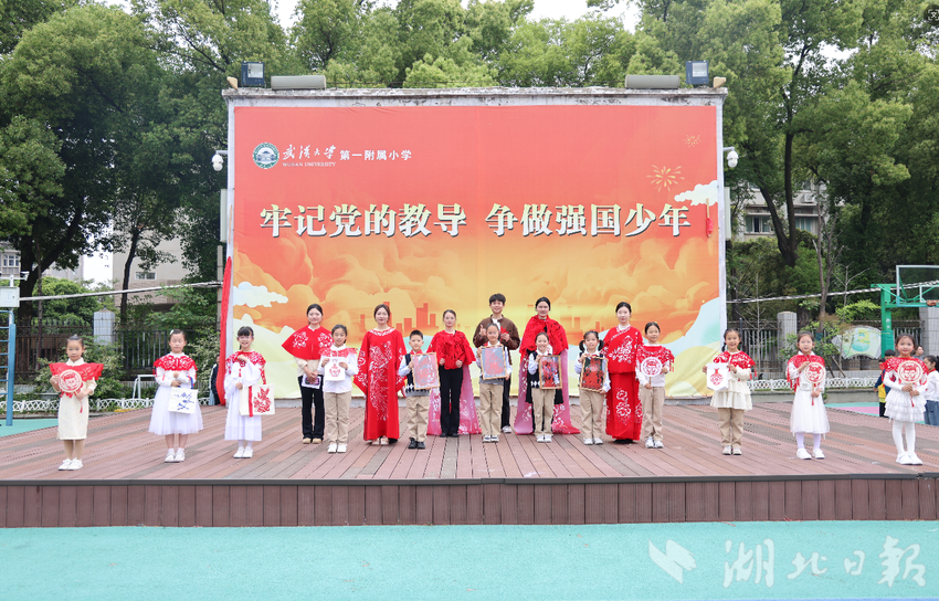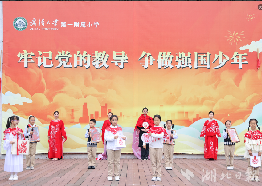 湖北日报讯(通讯员李子璇、卢飞逸)为纪念五四运动107周年,深入弘扬爱国、进步、民主、科学的五四精神,落实立德树人根本任务,武汉大学第一附属小学在晨会升旗仪式上,开展“非遗映青春,薪火传五四”主题活动。本次活动以非遗剪纸为特色载体,打造“党员教师铸魂、团员教师引领、少先队员传承”的育人场景,将五四精神、传统文化与思政教育深度融合,让主题活动成为铸魂育人的生动课堂。