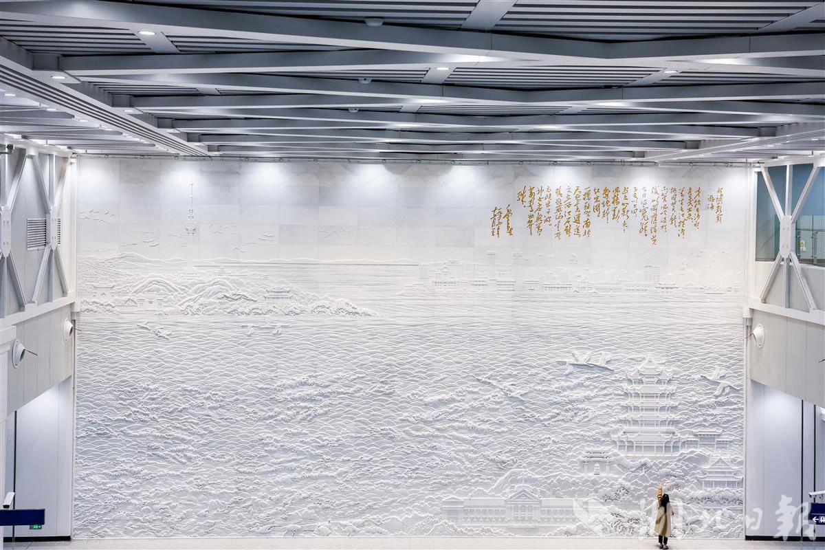 武昌站东广场站艺术墙。湖北日报全媒记者 倪娜 摄