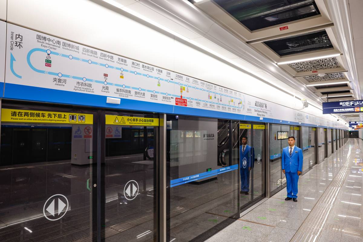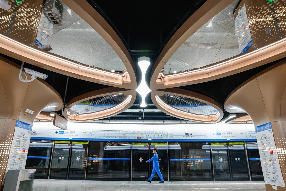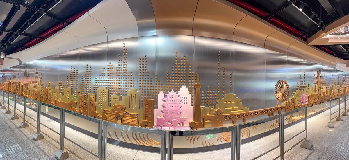 2026年4月28日,武汉首条地铁环线12号线一期工程国博中心南站、武昌站东广场站、公正路站三座特色站全新亮相。据介绍,国博中心南站以“博览万千”为主题,镜面艺术墙呈现长江韵律;武昌站东广场站设巨型汉白玉艺术墙,尽显“城站武昌”楚韵风情;公正路站主打暖金色调,融合自然灵韵与商业活力。各站点设计风格鲜明、亮点十足,融入江城元素与荆楚文化,装修精致美观、氛围感十足。不仅优化了乘车环境,提升了通行舒适度,更展示了城市风貌与人文底蕴。高颜值特色车站,让市民日常出行更有质感,助力城市公共交通品质升级。(湖北日报全媒记者 倪娜 通讯员 林晗 袁永华 摄)