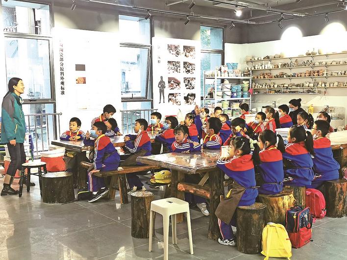侯美玲正在给小学生们讲解彩陶制作技艺。