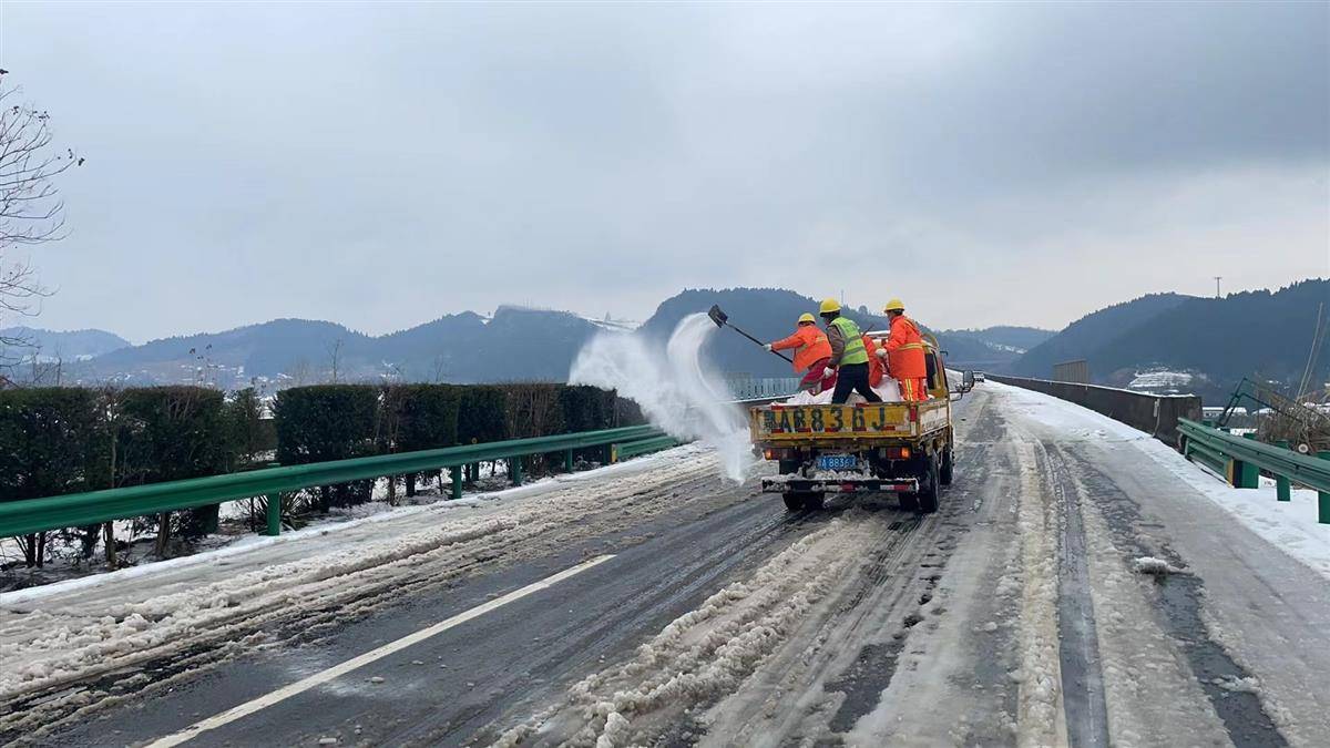 2日17时,沪渝高速长阳段部分路段率先下起冻雨,宜昌运营公司立即安排对重点区域进行撒布作业。同时,在收费站、服务区、重要枢纽位置出入口,重点桥梁、隧道两端和易拥堵点等重点部位靠前布设保通力量,安排应急人员提前驻扎在沿线16个应急点,以每2小时一次的频率动态报告天气、道路通行监测,实时掌握路况环境。