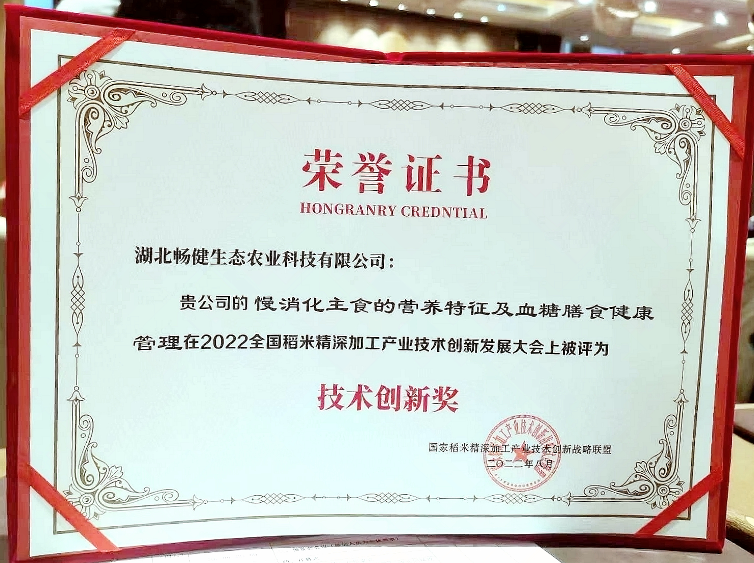 2019年3月,公司取得有机产品生产种植和加工双认证证书后,与华中农业大学共同完成“慢消化主食的营养特征及血糖膳食健康管理”项目,筛选出血糖应答稳定、升糖速度慢的大米,并进行规模化生产。据悉,此项目已获授权发明专利5件,软件著作权2项,形成技术规范1项。项目成果已在粮食加工、膳食健康产业中应用。2022年8月,湖北省食品科学技术学会在汉对这一成果召开科研项目成果评价会,一致认为该项目科技成果整体达到国际先进水平。