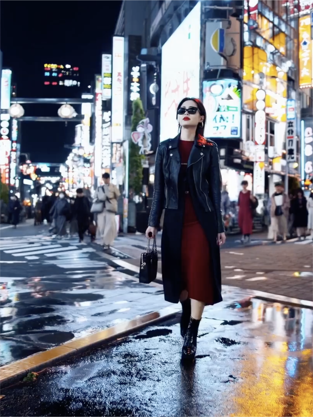 Sora模拟时尚女士走在东京街头,效果极其逼真。