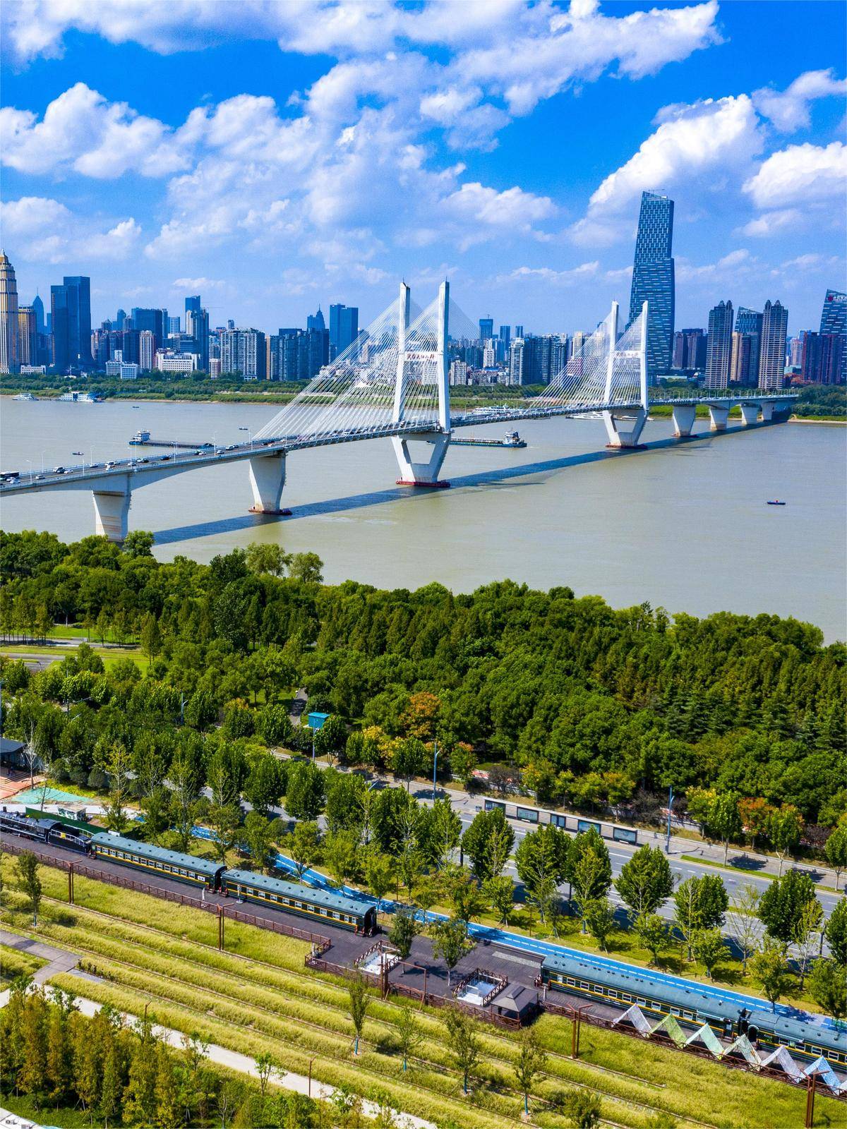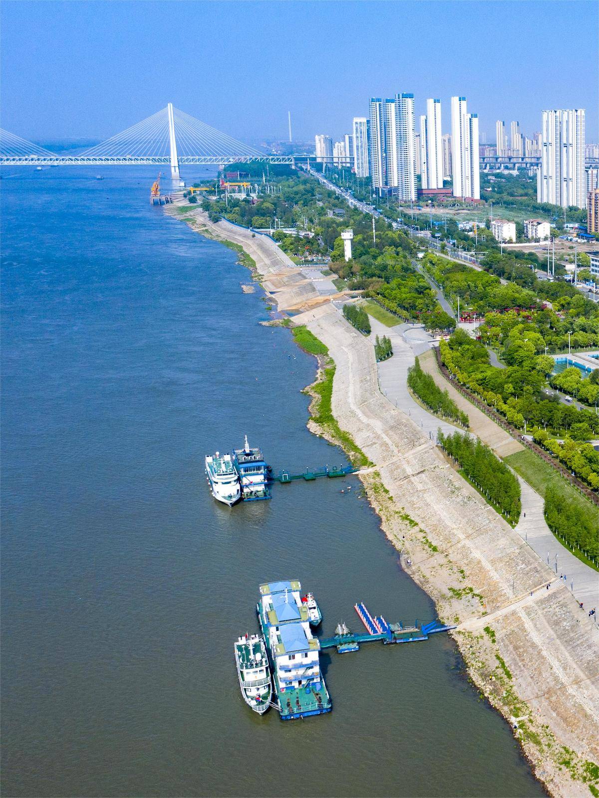 长江武汉段水清岸美,船舶穿梭往来。(湖北日报全媒记者 薛婷 摄)