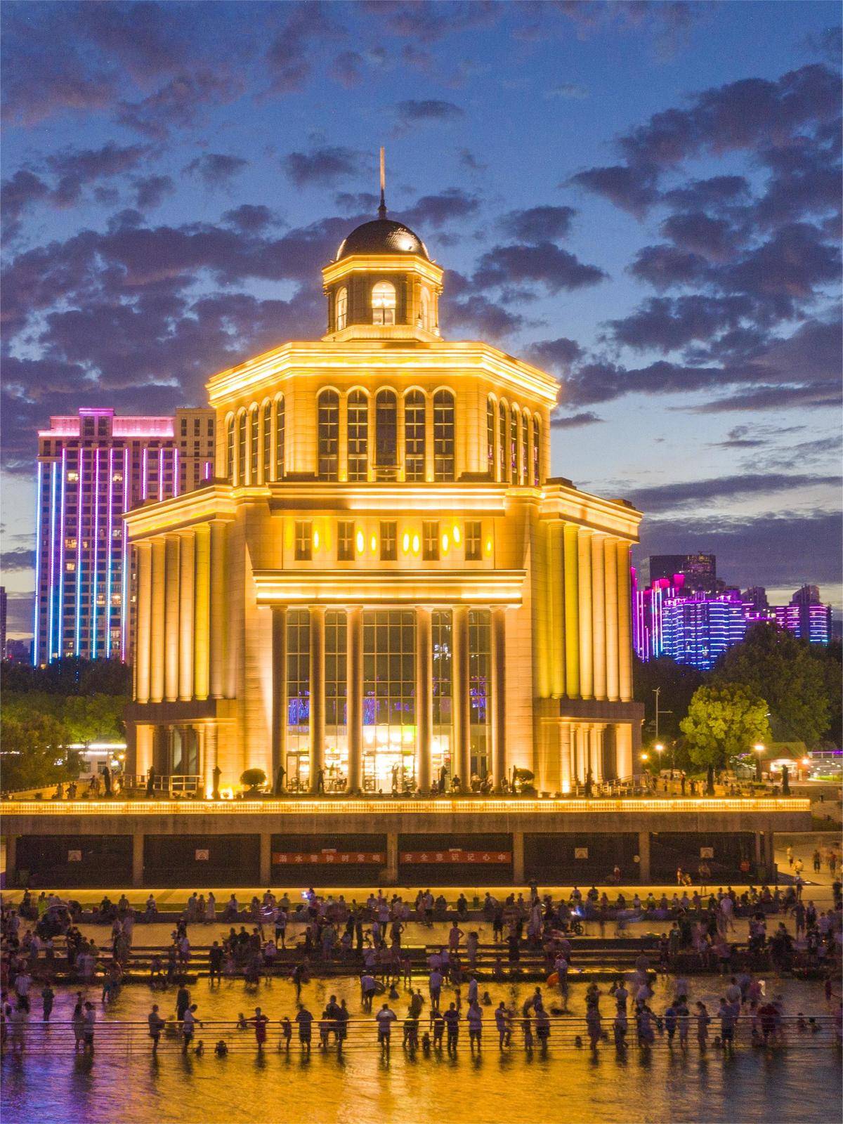 图为经过多年流域综合治理的汉口江滩,在夜色下光彩照人,成为市民消暑纳凉、体验滨江文化的好去处。(湖北日报全媒记者魏铼 摄)