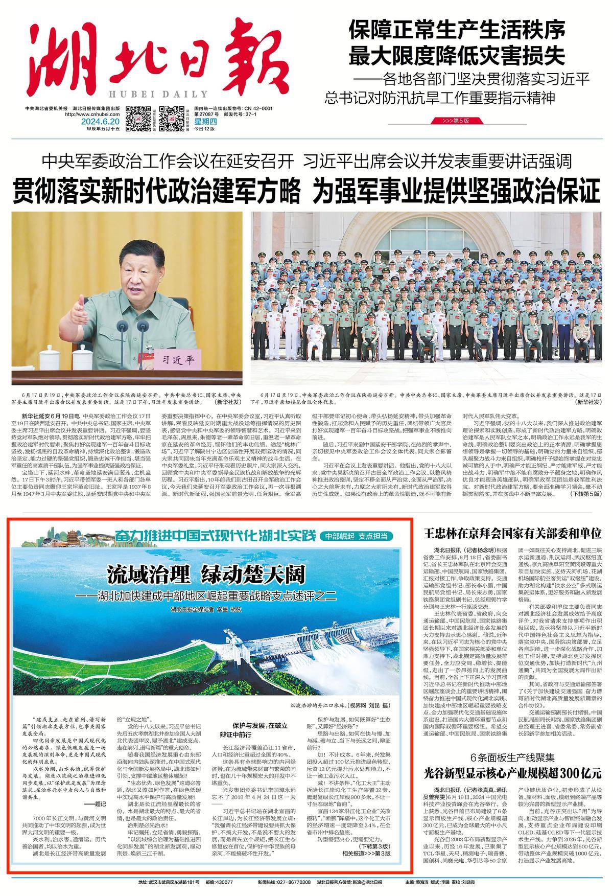 湖北是长江流域治理的基本支撑点和先行区