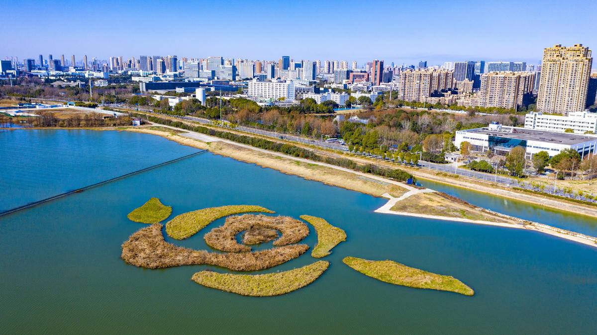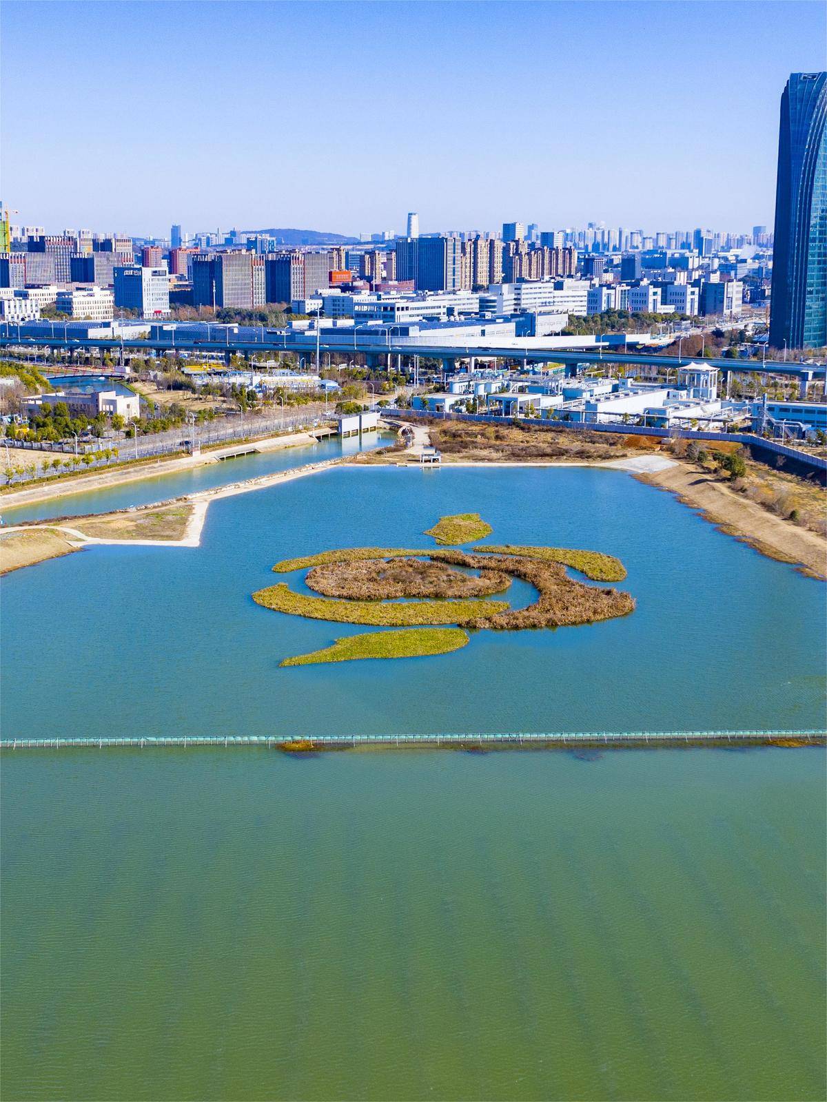 图为俯瞰武汉东湖高新区汤逊湖综合治理工程(一期)红旗湖区域,一片碧水蓝天。近年来,光谷一批水环境治理项目通过主体结构验收,目前运行稳定,有效守护汤逊湖等小流域水清、岸绿、景美。(湖北日报全媒记者 魏铼 摄)