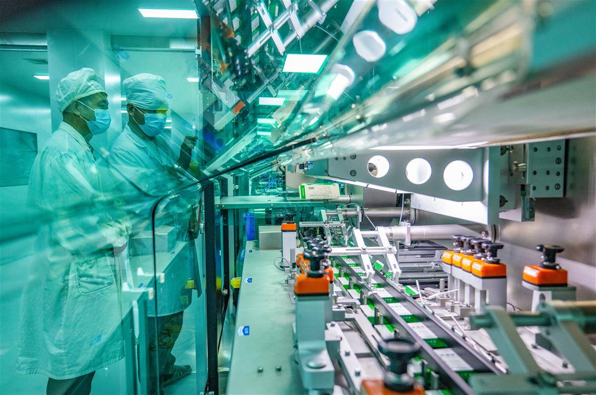 黄石下陆区,员工在朗天药业(湖北)有限公司调试智能化生产线。(湖北日报全媒记者 薛婷 摄)