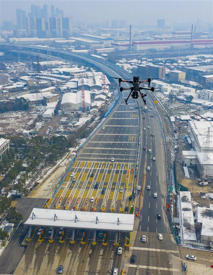 目前,光谷企业普宙科技自主研发的自主巡飞无人机系统已经广泛应用于智慧城市管理。(湖北日报全媒记者 魏铼 摄)