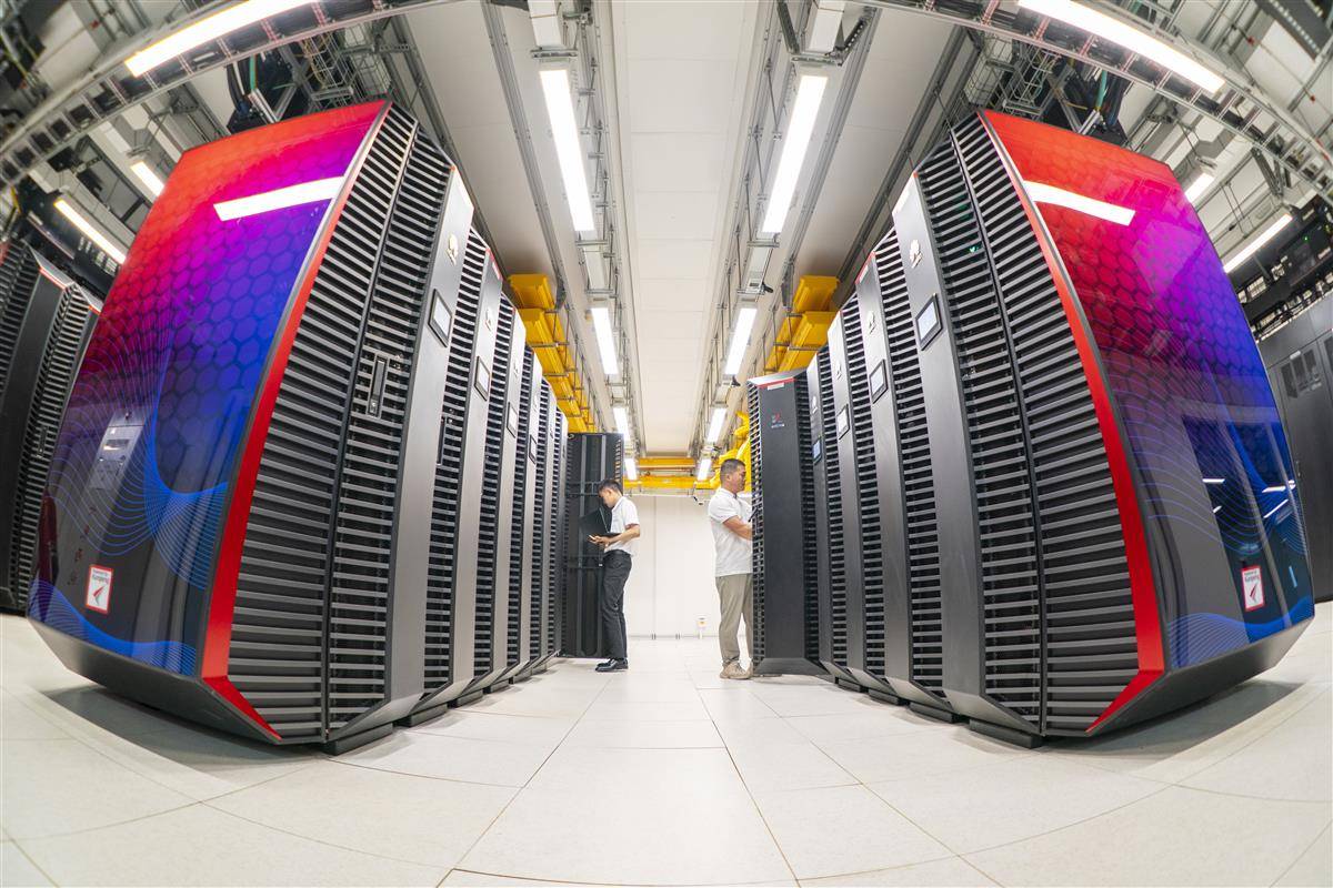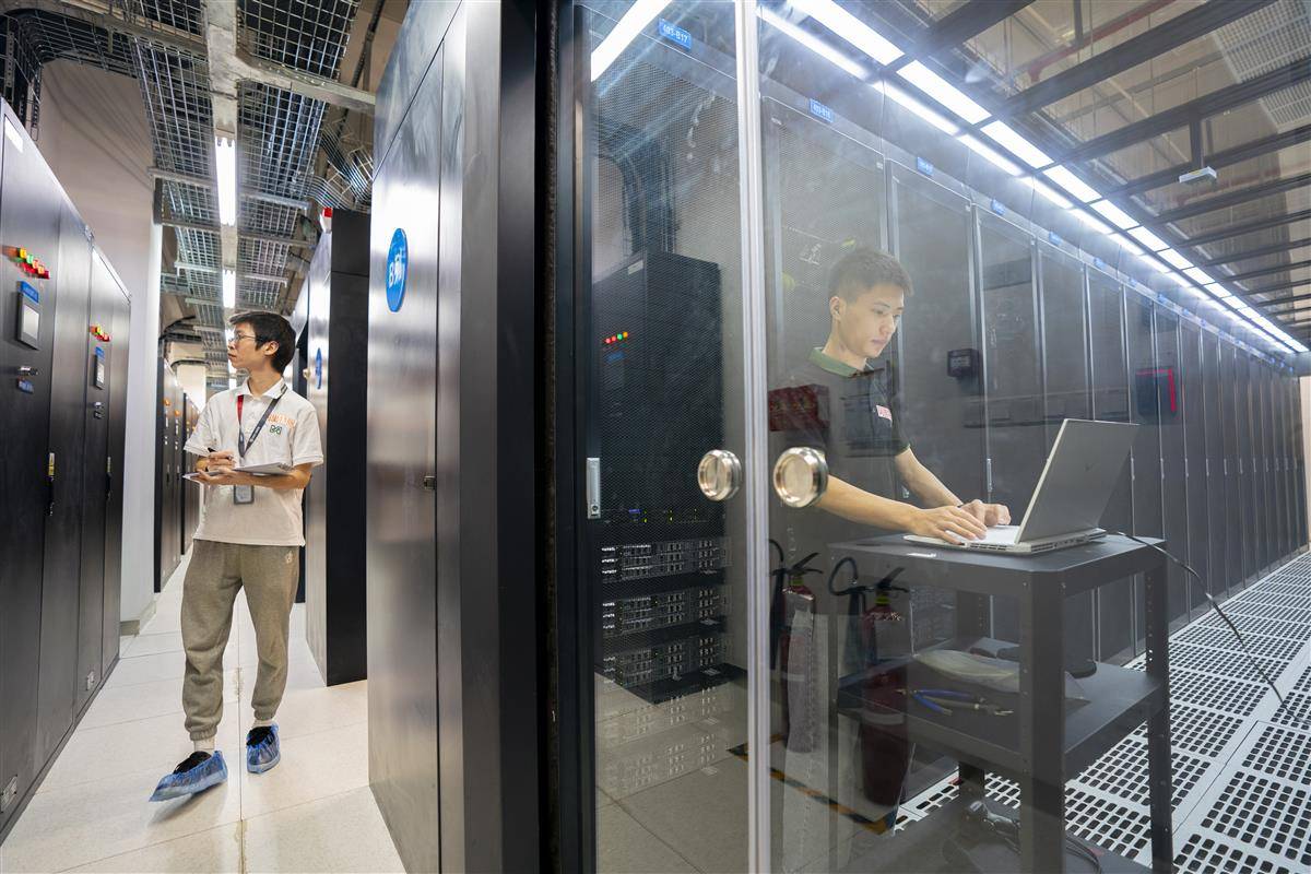 2023年6月5日,武汉超算中心机房,技术人员在巡控服务器机房。(湖北日报全媒记者 魏铼 摄)