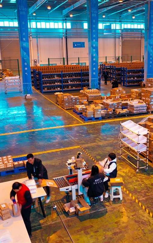 2023年11月10日,襄阳综合保税区菜鸟跨境仓,工作人员整理直达襄阳的海外商品。(湖北日报全媒记者田悦 通讯员谢勇 摄)