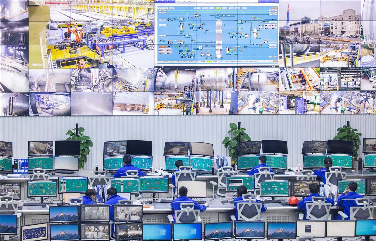 大冶有色弘盛铜业中控室,操作人员正在忙碌,各个生产环节一目了然。(湖北日报全媒记者 薛婷 摄)