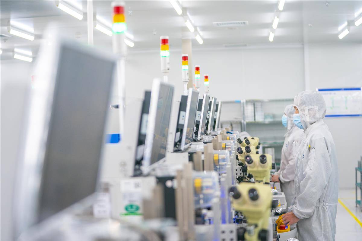 2月6日,在光谷企业光迅科技光电子产业园的洁净厂房,高端光模块产线一片繁忙,自动化设备昼夜不停运转。(湖北日报全媒记者 魏铼 通讯员 郭曼 摄)
