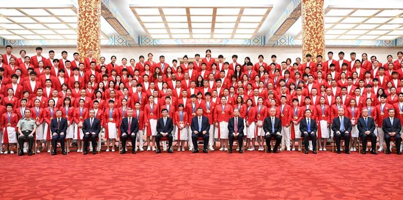 △8月20日,习近平总书记在人民大会堂接见第33届夏季奥林匹克运动会中国体育代表团全体成员。