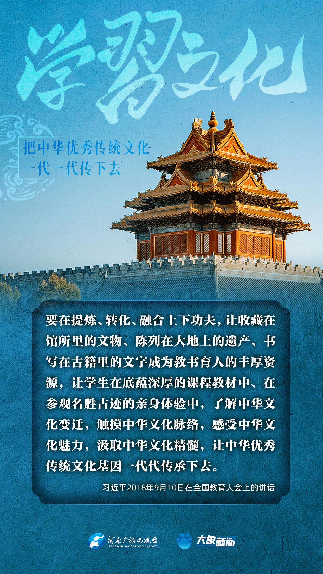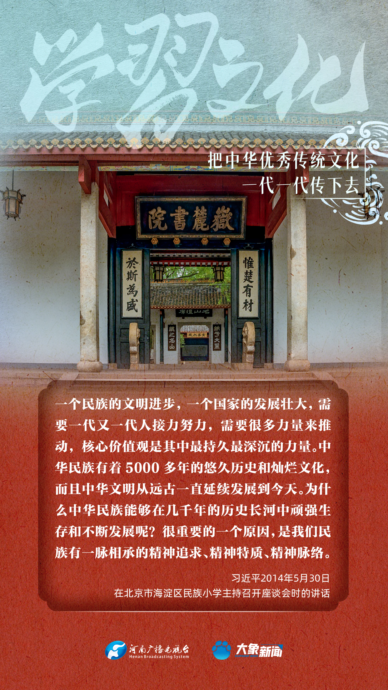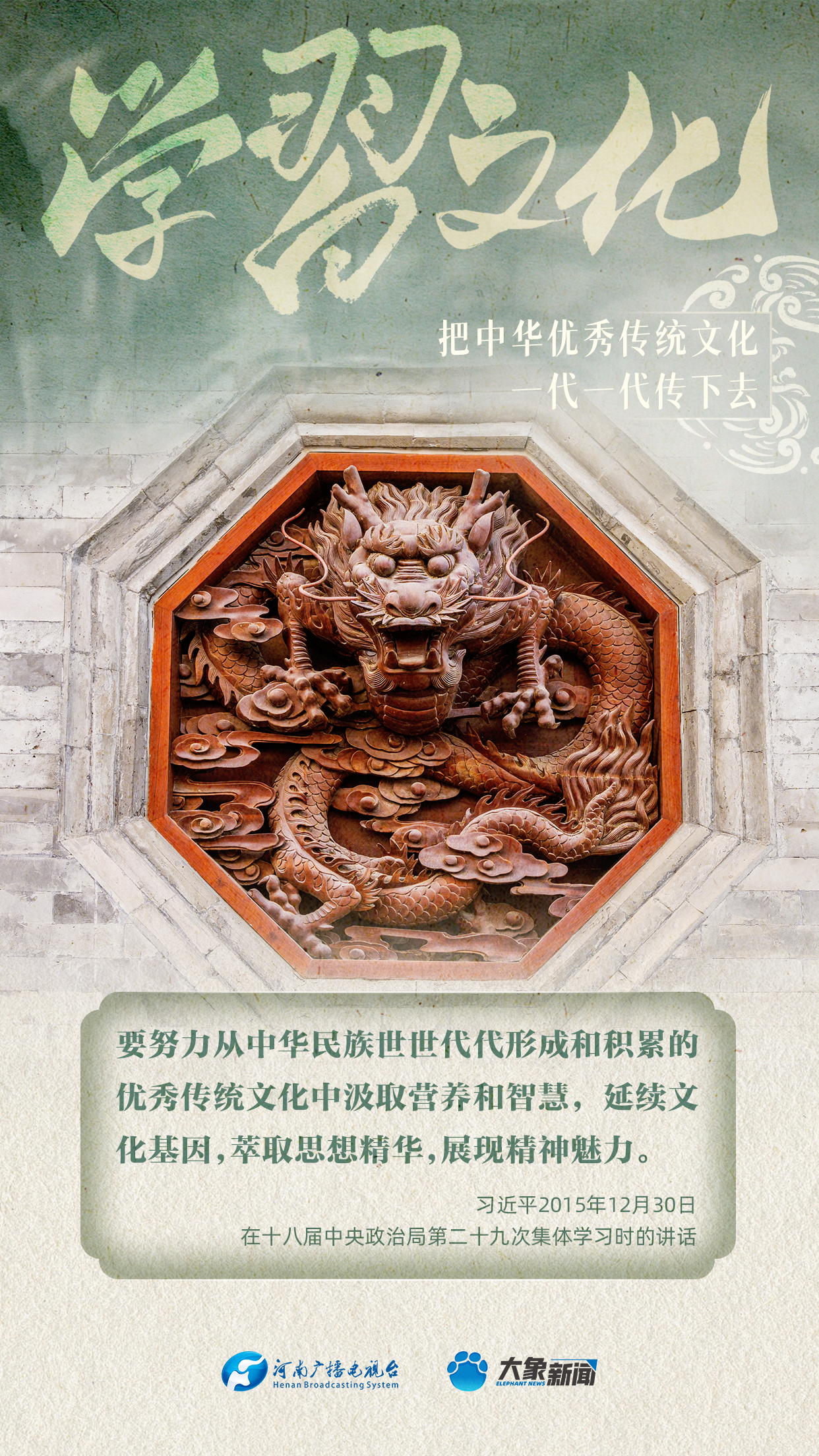习近平总书记高度重视中华优秀传统文化的传承发展,发表了一系列重要讲话,大象新闻邀您一起学思践悟,身体力行。