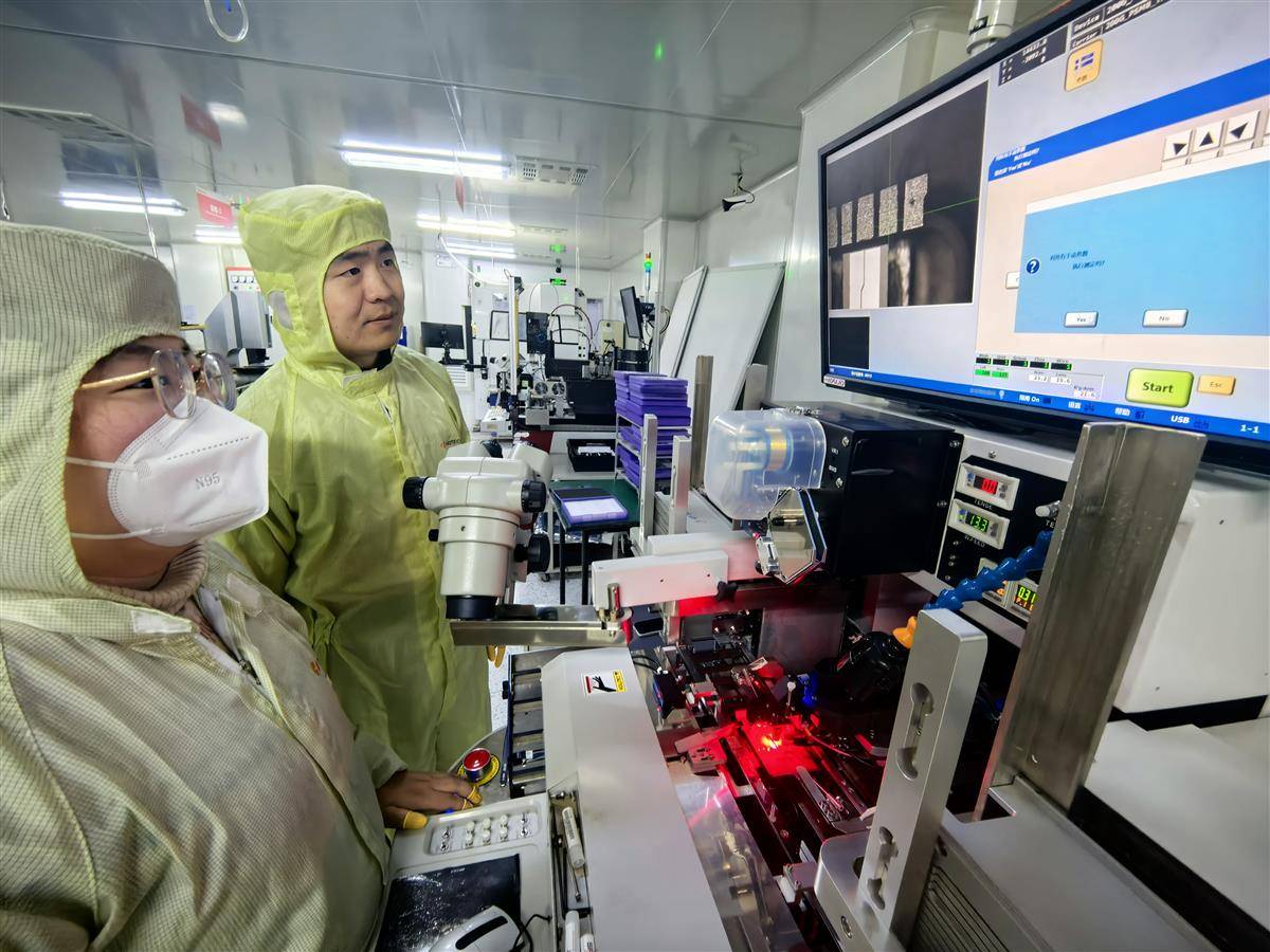 组装、贴片、键合、耦合……走进公司技术中心研发实验室内,只见团队成员们身着米黄色防尘服,各自安静有序地忙碌着。