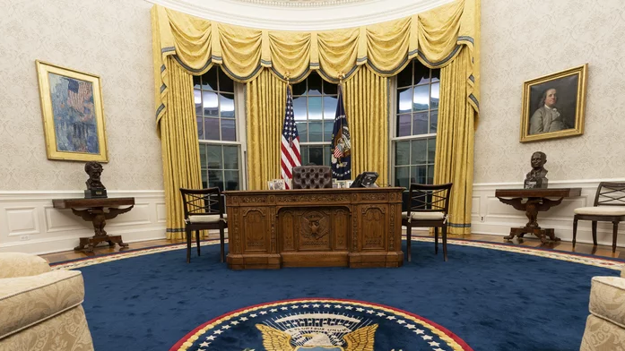设计图显示,新建的宴会厅内摆放着金色吊灯和金色椅子,与特朗普在本次任期内装修的“金灿灿”的椭圆形办公室装饰非常一致。