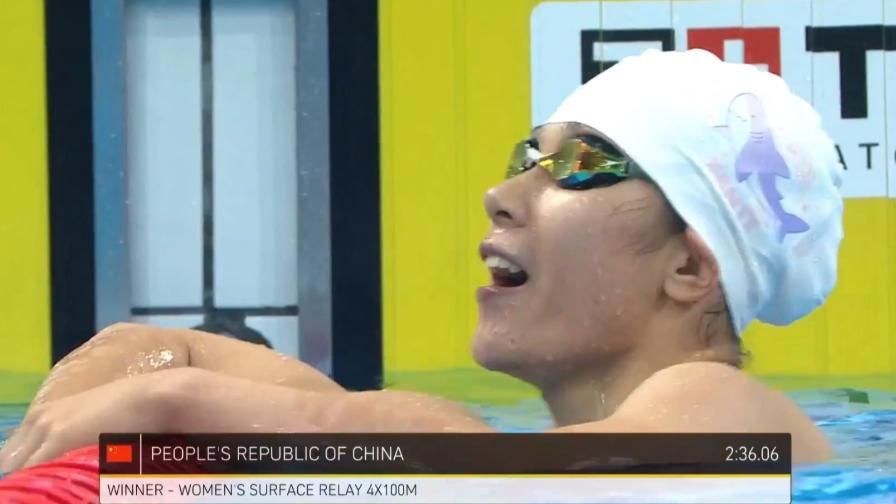 中国队收获世运会女子4×100米蹼泳接力金牌