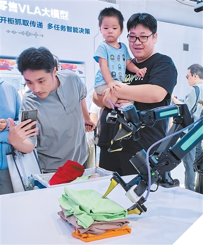 服务千寻智能的展台上,机械臂正在叠衣服。本报记者 李建广摄