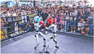 竞技人形格斗机器人的拳击表演吸引大批观众。本报记者 张武军摄